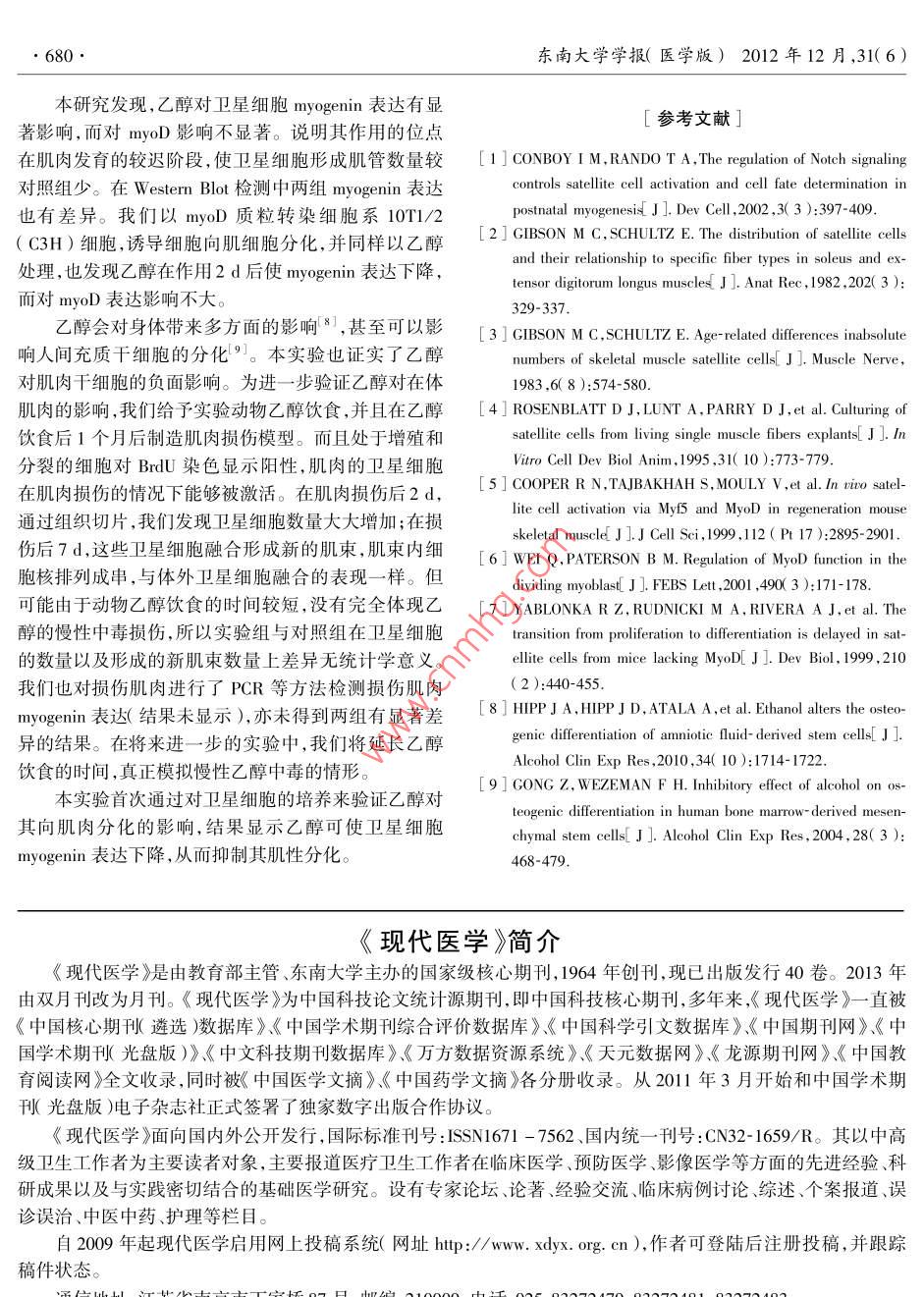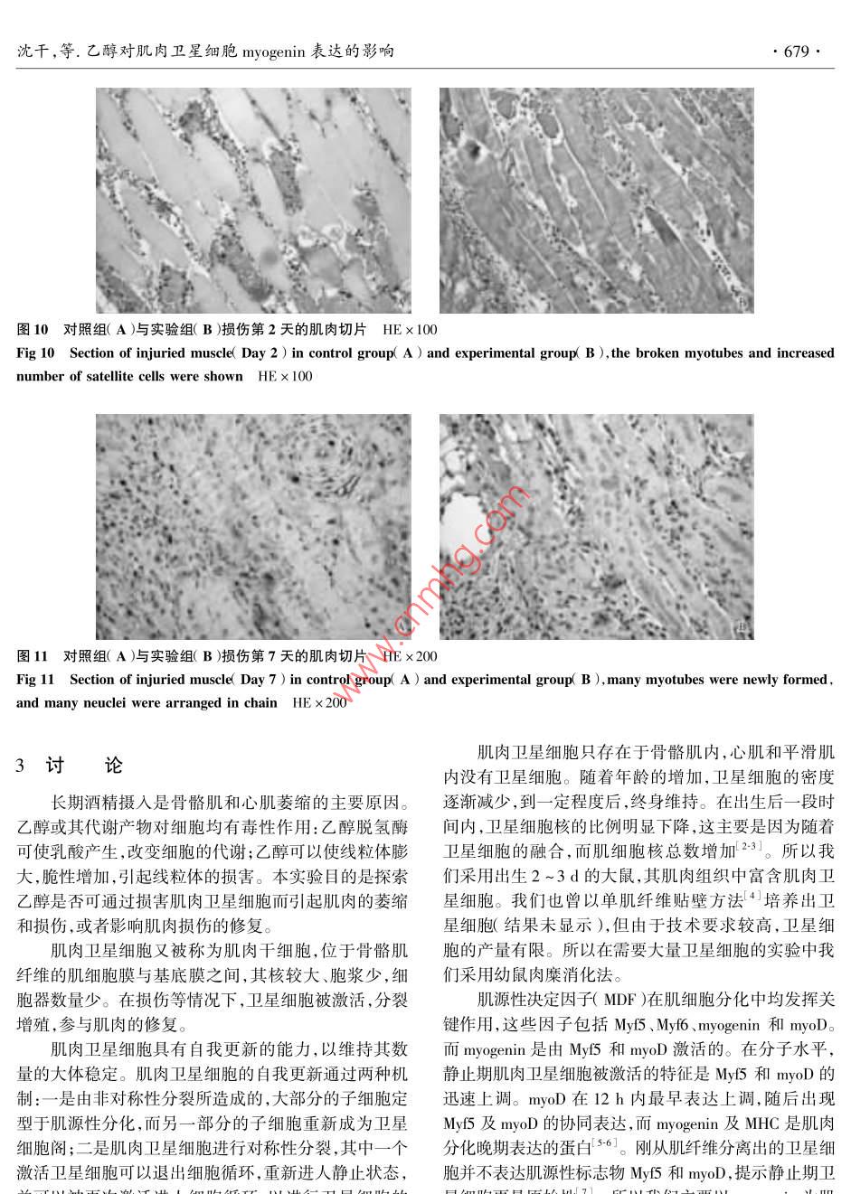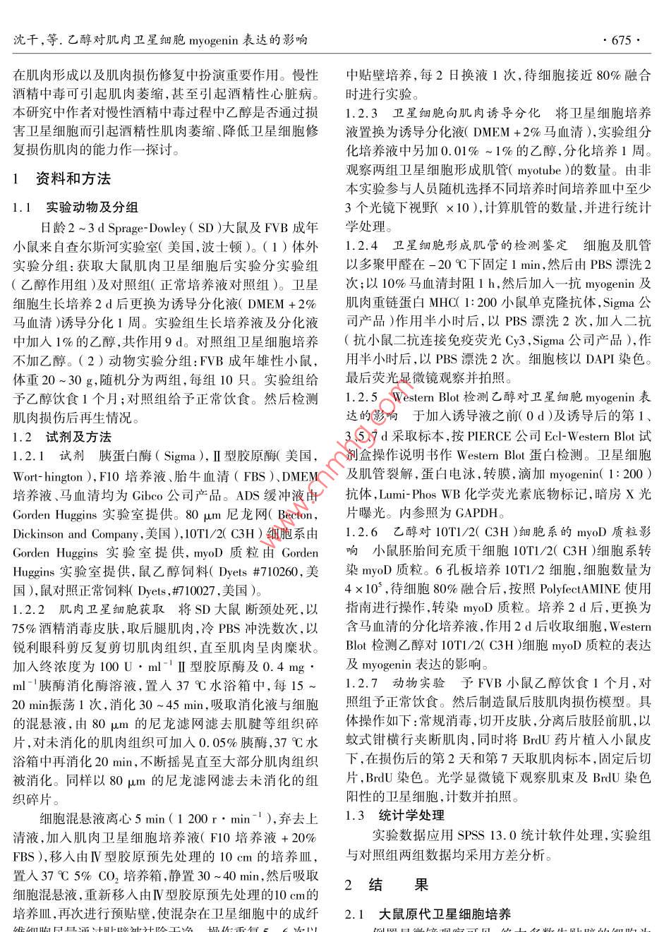 乙醇對(duì)肌肉衛(wèi)星細(xì)胞myogenin表達(dá)的影響