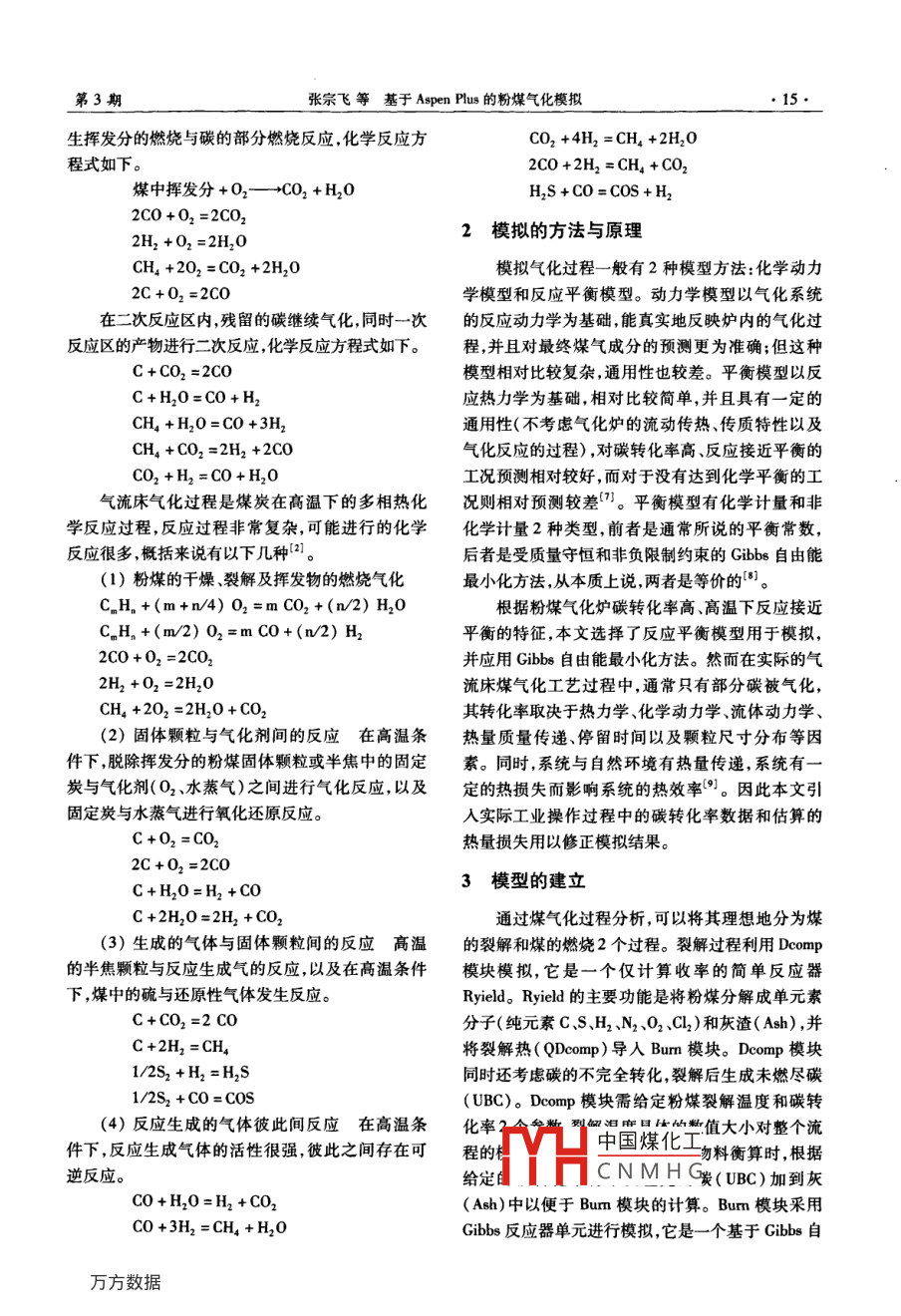 基于Aspen Plus的粉煤氣化模擬