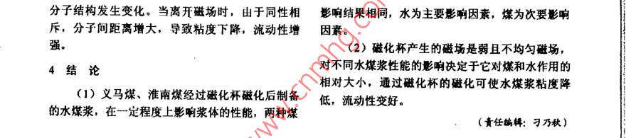 磁化對(duì)水煤漿成漿性能影響的初步研究