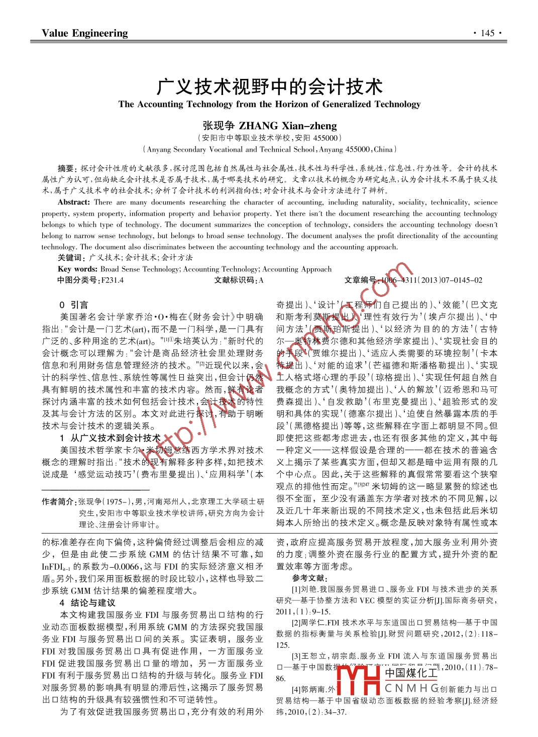 - 期刊名字:價(jià)值工程