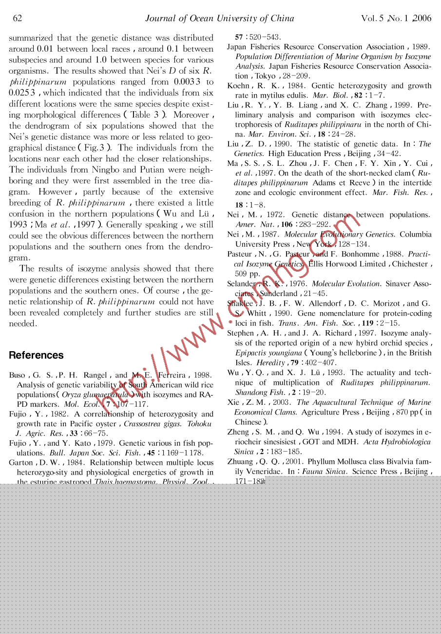 Isozyme Analysis on the Populations of Ruditapes philippinarum