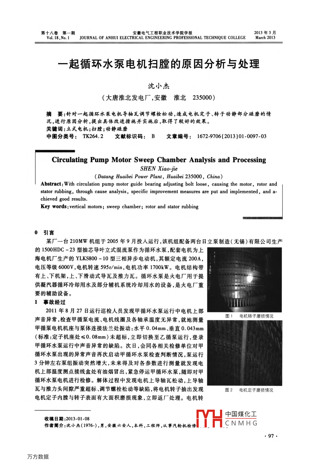一起循環(huán)水泵電機掃膛的原因分析與處理
