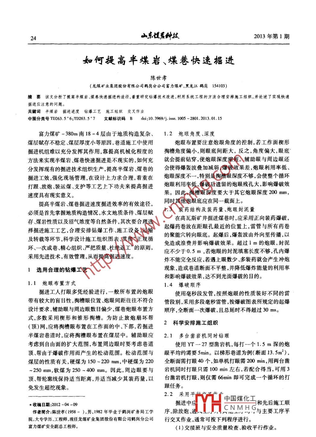 如何提高半煤巖、煤巷快速掘進(jìn) 如何提高半煤巖、煤巷快速掘進(jìn)