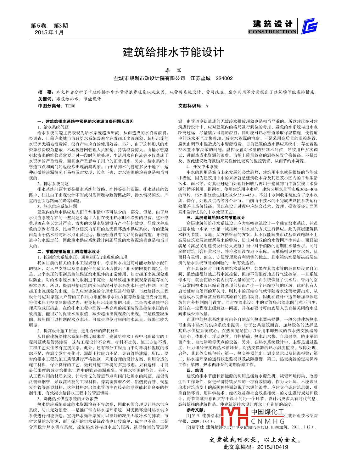 建筑給排水節(jié)能設(shè)計(jì)