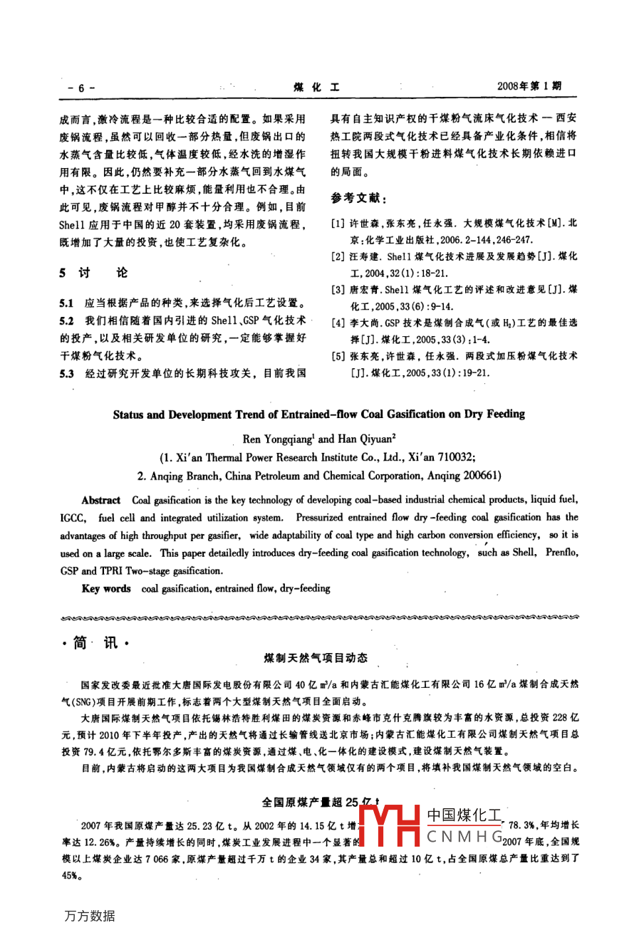 - 期刊名字:煤化工