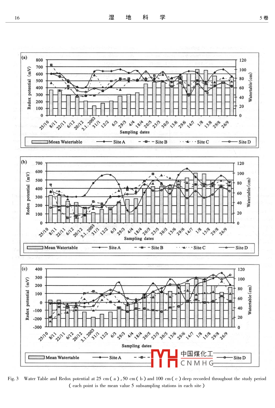 第5卷第1期濕地科學(xué)Vol. 5 No. 12007年3月WETLAND SCIENCEMar.,2007WATER TABLE AND REDOX CONDITIONS IN DEEPTROPICAL PEATHajah Dulima Jali( Department of Geography , Faculty of Arts and Social Science , University Brunei Darssalamn , Tungku Link , BE1410 , Brunei )ABSTRACT :Redox potential in the well developed tropical peat swamp in Brunei was studied for a year. Generally theredox potential measurements showed a large variation , ranging from -234 mV to 727 mV. The expected rise in redoxvalues did not take place following the drop of water table during the dry months of June to September. The redox valueat 100 cm depth indicated that the soil remained reduced throughout the year in spite of the lowering of water table below150 cm in all sites during dry period. Similarly the redox values did not decrease rapidly following flooding when the wa-ter table rose to the surface. This phenomenon could be atributed to the topography of the peat dome which facilitatedthe fast lateral movement of water and thus promoted oxygen supply down the peat profile , though not great enough toreach the 100 cm depth. The rapid lateral flow of water in the outer Alan batu site facilitated aeration , but in the innersites remained which was reduced because of the slower water movement. The slower initiation of the reducing conditionwas likely due to the presence of nitrate which has accumulated as a result of ammonium oxidation during the relativelylong aerobic period. Differences in the distribution of redox potential with depth are possibly explained by the differentpermeability of peat affecting flow patterns and residence time of water. The nature and compactibility of the peat mighthave slowed the diffusion rates of O2 into the lower layer. Though the bulk density of the peat was low , the compositionof the peat might influence the peat permeability and hydraulic conductivity. The tree trunks are not decomposed or largebranches must have lowered permeability compared to the other peat material.KEY WORDS :water table ; redox potential ; peat swamp ; Brunei DarussalamCLC number :P941.78 S153Document code :A Article ID :1672 - 5948( 2007 )01 -013 -07Changes in redox potential( RP ) are the resultted to investigate the RP of the deep tropical peat andof the combined effects between many chemical ,to determine the relationship between water table andphysical and biological processes in the soil. Soil oxi-redox potential( Eh ).dation and reduction depend on soil respiration , diffu-1 MATERIALS AND METHODSsion of oxygen and carbon dioxide in soil and onchanges in biochemistry of the system.W aterlogged1.1Study Site .condition decreased the rate and amount of O2 diffu-The study was conducted in a well developed peatsing into the soil resulted in anaerobic condition( Bai-swamp of Belait ( 950 km2 ),in the a small Sultanateley , Beuchamp , 1973 ;Savant , Ellis ,1964 ). In an-(5 280 km2 ) of Brunei Darussalam , located in theaerobic soils RP was shown to be negatively correlatednorthwest coast of the Borneo Island , between the lati-with microbial activity( Kralova ,et al , 1992 ). Lowtude 4°N to 5°N and longitude 114°04'E to 115*35' E.RP developed with increased soil moisture content be-The Badas peatland is part of the extensive Baramcause of the partial or complete displacement of oxy-Peatland of Miri , Serawak and situated in between agen from soil and rapid consumption of oxygen by soil中國煤化工the lttoral fringe alongmicrobes ( Savant , Ellis,1964 ). RP in anaerobictheTMYHne sea. The study wassoils was also shown to be pH dependent ( DragunconCNMH Go2 1o December 2003.1993 ; Van Breemen , 1987 ). This study was conduc-The redox potential( Eh ) determined was conductedReceived date :12 - 09 - 2006 ; Revised date :23 - 02 - 2007Corresponding author : Hajah Dulima Jal( 1961 - ) , Male , Ph. D,senior lecturer. Main interesting fields :wetland ecology and menagement ,soil science , biogeography and environnental science. E-mail : dulina@ fass. ubd. edu. bn14濕地科學(xué)5卷for 12 months from October 2002 to September 2003.pose of large quantity of relatively un - decomposedData collection was done in fortnightly.woody material. Soil bulk is very low , less than 0. 1The climatic condition is hot and wet throughoutg /cm’,ranging from0.05 g /cm2 to0. 14 g /cm2whole year with mean temperature of 30 C and an-with the mean of 0.097 g/cm*. The peat of Badas isnual rainfall of 3 000 mm. The study sites were se-extremely acidic with the pH values ranging from 2.8lected across the topographical range of the peatto3.9 ,and the mean of 3.3.dome , from the edge to the centre ,about 1 m to2 m ..2 Methodsabove sea level. 4 sites were selected to represent1.2.1 Probe constructiondifferent peat forest communities. Site A was locatedThe redox potential in the peat profile was deter-in the Alan batu community , site B represent the Al-mined by using methods of Faulkner et al ( 1989,an bunga community , site C situated in the Alan pa-1992 ) and Coggeret al( 1992 ). Redox probes weredang padang Transition Communities and site D wasconstructed from 18 gauge platinum wires and 2. 5placed in the Alan padang community. In each sitemm copper wire of 25 cm ,50 cm , 100 cm length.the transact of 500 m long was constructed and 5The platinum was first cut into 1. 5 cm segments.sampling stations were install ed at 100 m interval.The segments were allowed to stand in 1: 1 mixture ofThe peat is heterogeneous , with the peat depthsconcentrated Nitric and Hydrochloric Acid for at leastrange from 9 m to 15 m. The surface layer consists of4 h to remove surface contamination of metal thatloose freshly fallen ltter up to 15 cm thick. The up-could occur during cutting or handling. The cut wireper layer( 20 - 40 cm ) contained well and partiallysegments were soaked in distilled water overnight.decomposed peat , followed by slightly , or partiallyThe platinum was soldered directly to the copper wiredecomposed peat ,containing 