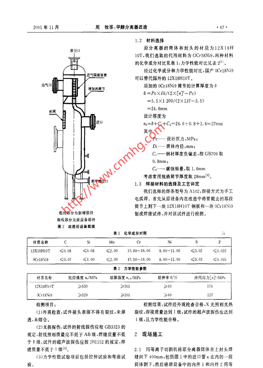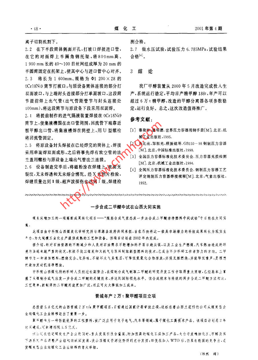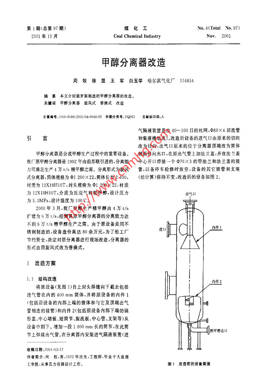 甲醇分離器改造