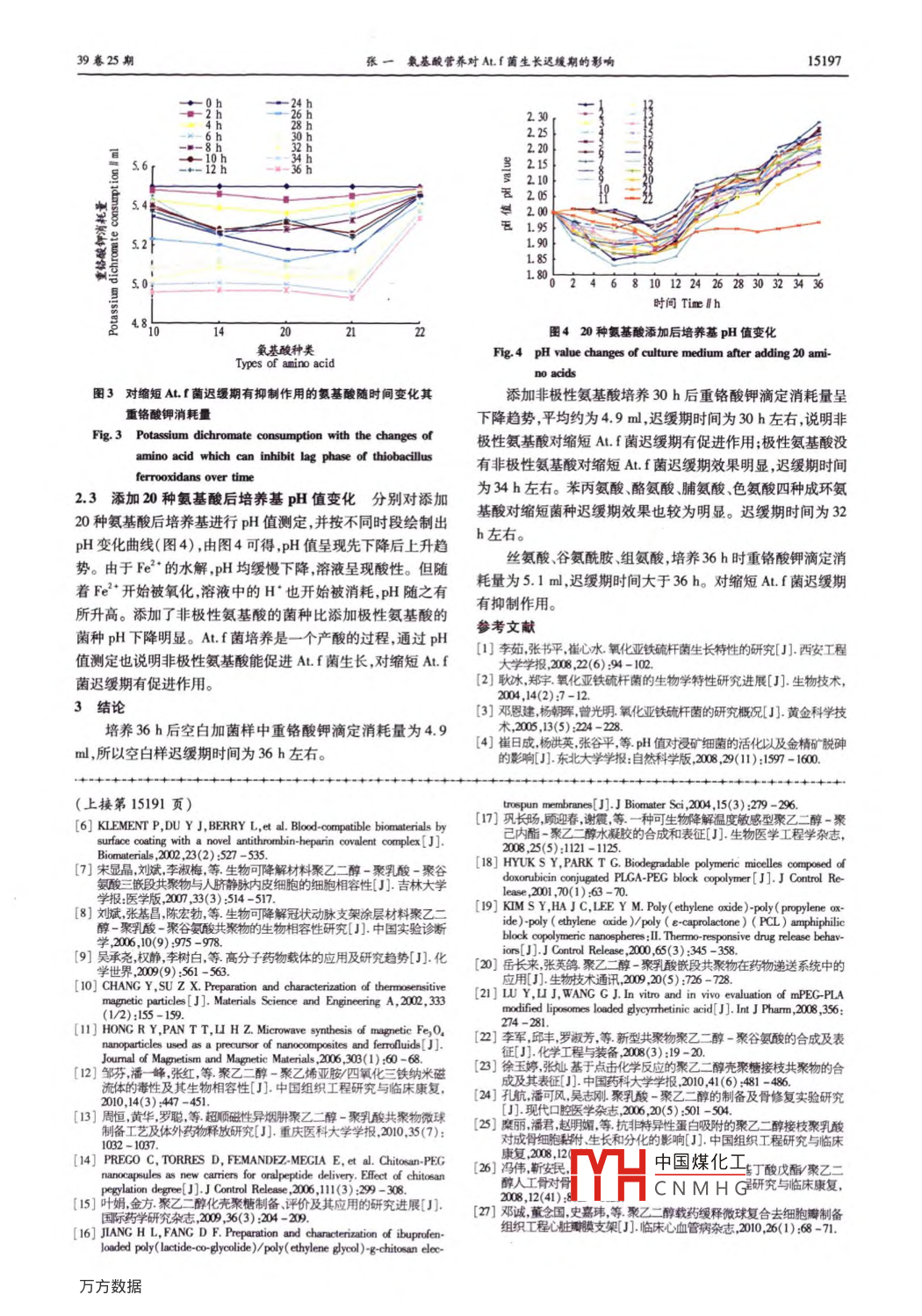 安最農(nóng)業(yè)科學(xué), Journal of Anhui Agri.Si.2011,39(25):15189-15191,15197貴任編輯陳紅紅貴任校對(duì)李巖聚乙二醇在生物材料中的應(yīng)用研究嚴(yán)涵,楊延慧’,崔園園',徐靜',陳紅,康曉梅',陳曉浪2,張志斌(1.西南交通大學(xué)生命科學(xué)與工程學(xué)院,四川成都610031;2西南交通大學(xué)材料科學(xué)與工程學(xué)院四川成都610031)摘要綜述了聚乙二醇在生物材料表面改性、藥物敢體材料和組織工程材料方面的應(yīng)用研究。對(duì)秉乙二醇進(jìn)一步的研究與開發(fā),將使其在生物醫(yī)藥中具有更廣泛的應(yīng)用前景。關(guān)鍵詞聚乙二醇;表面改性;藥物載體;組織工程材料中圖分類號(hào)R318.08文獻(xiàn)標(biāo)識(shí)碼A文章編號(hào)0517-6611(2011)25-15189-03The Research and Application of Polyethylene Glycol as BiomaterialYAN Han et al College of Life Science and Engineering, Southwest Jiaotong University, Chengdu, Sichuan 610031)Abstract This paper reviews the research and application of polyethylene glycol PEG ) in surface modification of biomaterial, medicine car-rier material and scaffold material for tissue engineering. With further research and development, PEG will be given a wider application pros-pect in biomedicine.Key words Polyethylene glycol; Surface modification; Medicine carrier material; Scaffold materials for tissue engineering聚乙二醇( Polyethylene Glycol,PEG),是由環(huán)氧乙烷與的粘附并能減輕由于材料表面非特異性吸附而引起的各種水或乙二醇逐步加成聚合得到的一類分子量較低的水溶性不良反應(yīng)有效提高了生物醫(yī)用材料的血液相容性。大量聚醚,其結(jié)構(gòu)式為:研究表明,在材料表面接枝PEG的密度達(dá)到一定量時(shí),材料HO-ECH2CH2O]。H具有很強(qiáng)的抗凝血性能。PEG作為一種兩親性聚合物既溶于水,又溶于絕大多數(shù)有李愛貴等“研究表明,用PEG進(jìn)行表面修飾的納米給機(jī)溶劑,且其生物相容性好,具有無毒、免疫原性低等特點(diǎn),藥系統(tǒng),可以改善以聚乳酸(PLA)、聚己內(nèi)酯(PCL)、聚癸二可通過腎排出體外,不會(huì)積累在體內(nèi)。在生物醫(yī)藥領(lǐng)域具有酸酐(PSA)為代表的聚酯聚酸酐聚氨基酸聚原酸酯等可廣泛的應(yīng)用前景。筆者綜述了PEG通過常規(guī)的方法改性生生物降解聚合物改性的微粒或納米粒,因聚合物的疏水性而物材料表面,提高材料血液相容性、作為藥物釋放載體材料造成的納米粒易被蛋白質(zhì)吸附或易被網(wǎng)狀內(nèi)皮系統(tǒng)捕捉,而及組織工程材料方面的研究進(jìn)展。使納米粒在體內(nèi)的循環(huán)時(shí)間不長(zhǎng)。通過接枝的方法,將PEG1PEG在生物材料褒面改性中的應(yīng)用鏈段作為親水組分鍵接在納米粒的表面,可以改善其親水當(dāng)生物醫(yī)用材料與血液直接接觸時(shí),體的血液和材料性使納米給藥系統(tǒng)達(dá)到高效低毒的目的。由于PEG鏈段之間會(huì)產(chǎn)生一系列生物反應(yīng),這些反應(yīng)表現(xiàn)為血漿蛋白被處于粒子表面伸向水中,并能夠在水中播擺,一方面,使粒吸附在材料表面血小板粘附聚集變形凝血系統(tǒng)和纖溶子間產(chǎn)生足夠大的斥力以克服范德華引力作用,從而使粒子系統(tǒng)被激活,最終形成血栓。因此,要求制造人工心臟、人工具有很好的穩(wěn)定性而不聚集;另一方面,能夠阻止蛋白質(zhì)的血管、人工心血管的輔助裝置、各種需進(jìn)入或留置于血管內(nèi)吸附和躲避網(wǎng)狀內(nèi)皮系統(tǒng)的捕捉,延長(zhǎng)納米粒在體內(nèi)的循環(huán)與血液直接接觸的導(dǎo)管和功能性支架等醫(yī)用裝置的生物醫(yī)時(shí)間,提高藥物的生物利用度。用材料,必須具備優(yōu)良的血液相容性。研究表明,改變材料PEG涂層的密度在給藥系統(tǒng)的功效方面也具有重要的表面的性能或結(jié)構(gòu)有助于提高材料的血液相容性。常見的作用。Vila等5研究表明,在 PLA-PEG納米粒通過小鼠鼻生物材料表面肝素化有明顯的抗凝血和抗血栓性能。從粘膜的試驗(yàn)中,具有高PEG涂層密度的復(fù)合納米粒遠(yuǎn)遠(yuǎn)較聚乙二醇的結(jié)構(gòu)式可以看出,PEG具有良好的血液相容性,無涂層PLA納米粒及低PEC涂層密度的復(fù)合納米粒更易通這是由于其水合的懸掛長(zhǎng)鏈影響血與材料界面微觀的動(dòng)力過鼻粘膜到達(dá)病灶部位。學(xué)環(huán)境使血漿蛋白與材料間的相互作用降低,阻礙血漿蛋12PEG接枝生物活性分子在生物材料表面改性中的應(yīng)白的吸附及構(gòu)象變化1。PEG鏈長(zhǎng)與其可動(dòng)性、血液相容性用“PEG+生物活性分子”改性是先將PEG化學(xué)接枝到材密切相關(guān)。料表面,然后通過與PEC自由端基的反應(yīng)將另一生物活性1.1純PEG在生物材料表面改性中的應(yīng)用通過化學(xué)接物質(zhì)或基團(tuán)接枝到材料表面,或直接將帶有生物活性基團(tuán)的枝或本體共聚的方法可將PEG接枝或富集到生物醫(yī)用材料PEG衍生物接枝到材料表面形成一種以PEG作為間隔臂的表面,從而在材料表面構(gòu)建形成一層長(zhǎng)鏈親水性鈍化層。的生物活性表面層。這種表面的血液相容性源于PEG親水該鈍化層能有效減少血漿中的蛋白質(zhì)和血小板在材料表面長(zhǎng)鏈的鈍化效應(yīng)和生物活性分子的分子識(shí)別機(jī)制。在PEC鏈段和生物活性分子的協(xié)同作用下,改性后得到的活性蒿金項(xiàng)