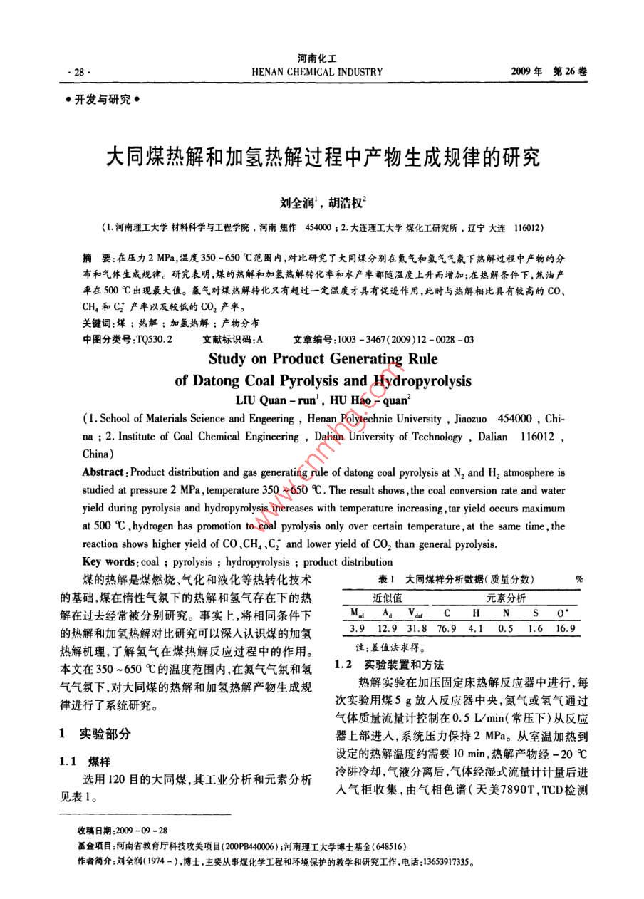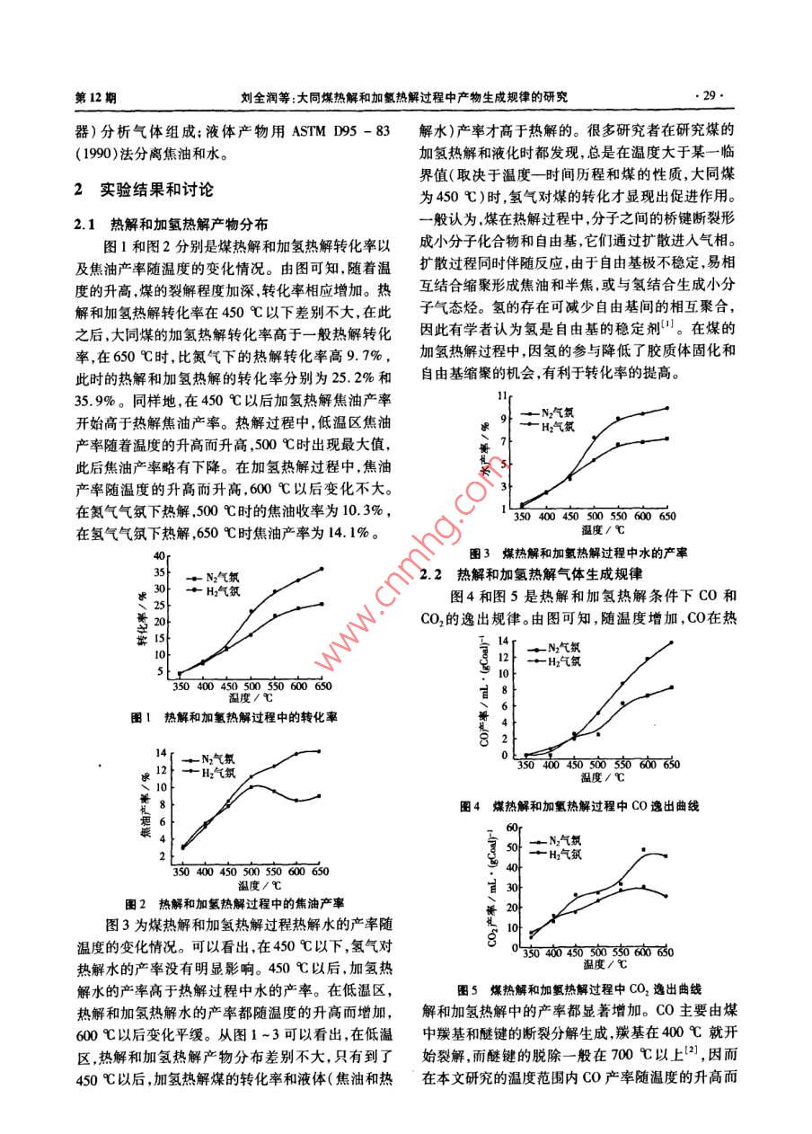 大同煤熱解和加氫熱解過程中產(chǎn)物生成規(guī)律的研究