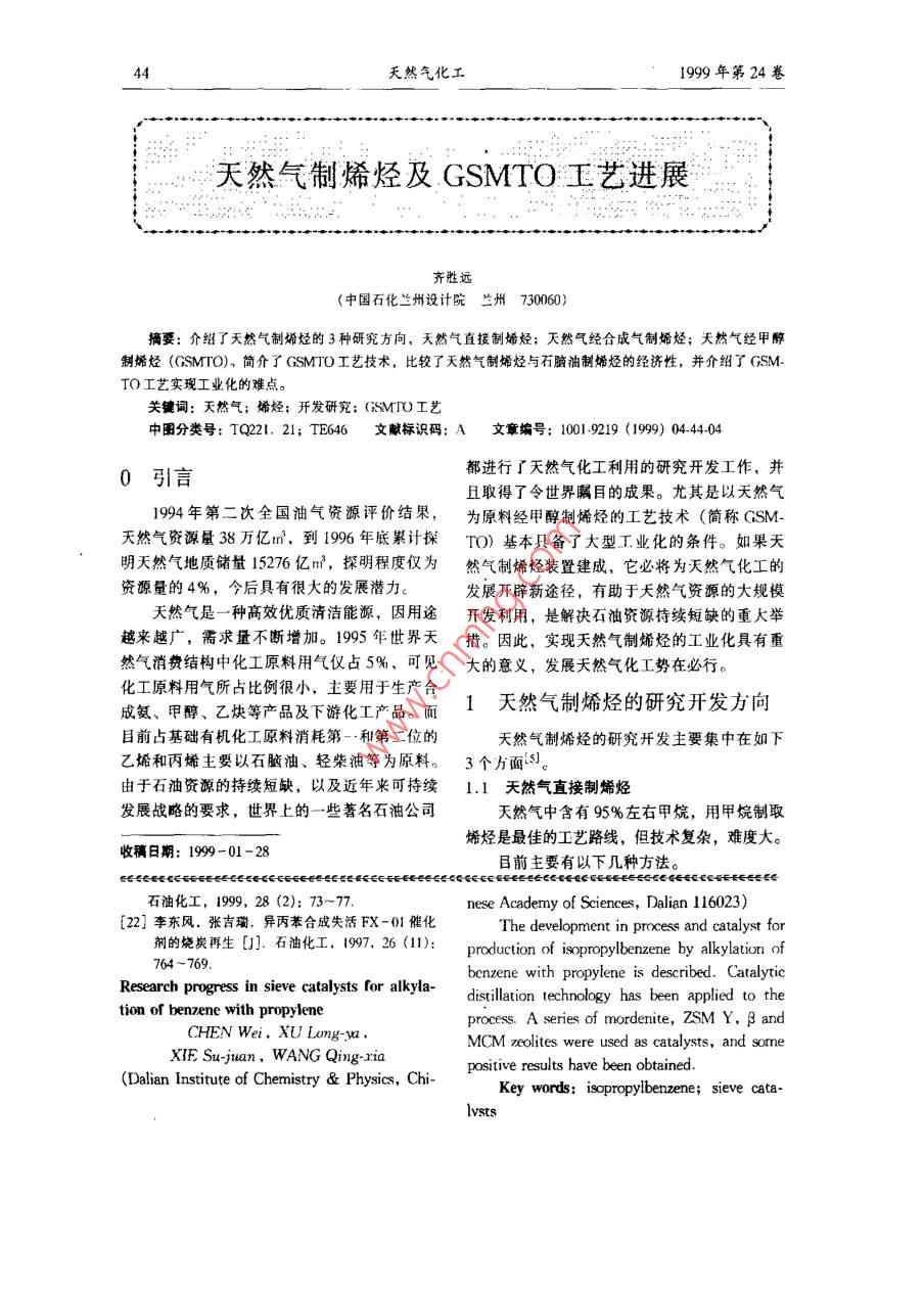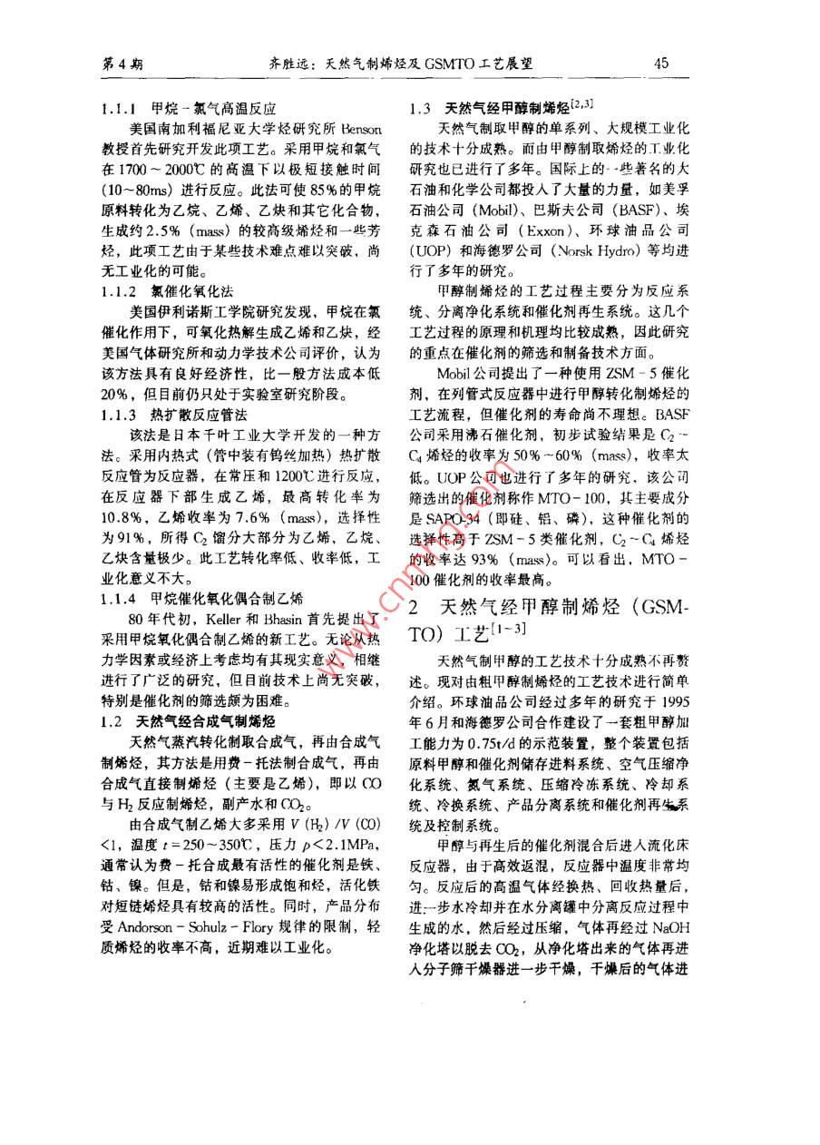 天然氣制烯烴及GSMTO工藝進(jìn)展