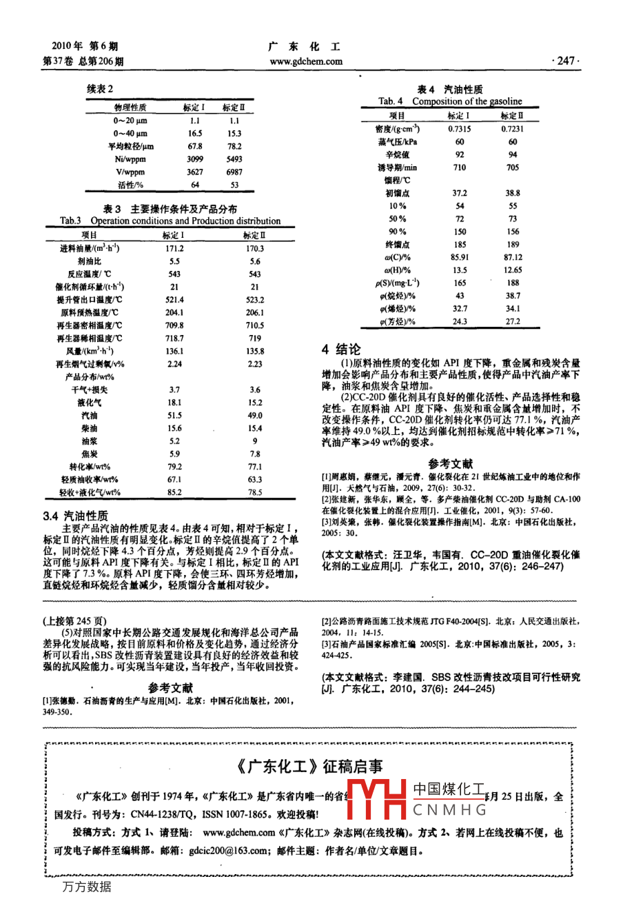 CC-20D重油催化裂化催化劑的工業(yè)應用