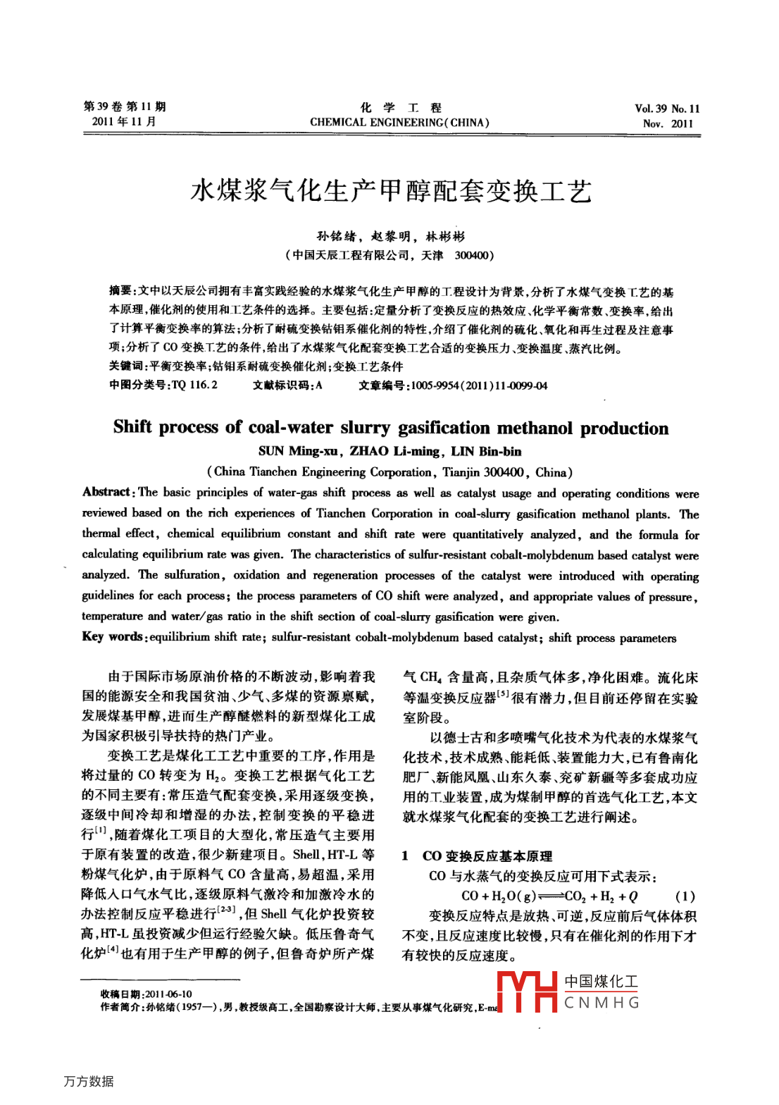 水煤漿氣化生產(chǎn)甲醇配套變換工藝