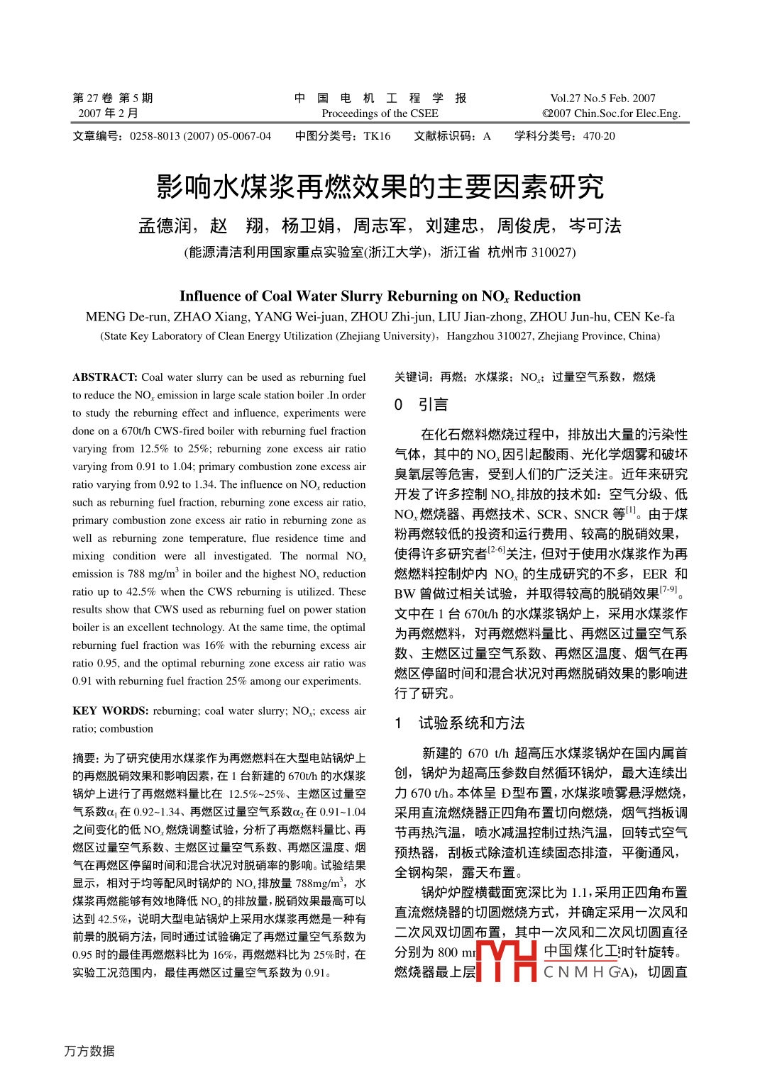 - 論文作者:孟德潤,趙翔,楊衛(wèi)娟,周志軍,劉建忠,周俊虎,岑可法