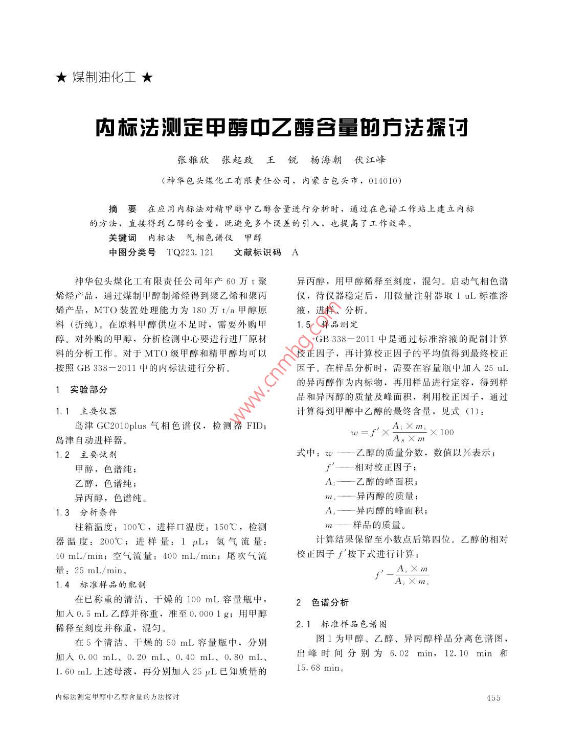 內(nèi)標(biāo)法測(cè)定甲醇中乙醇含量的方法探討