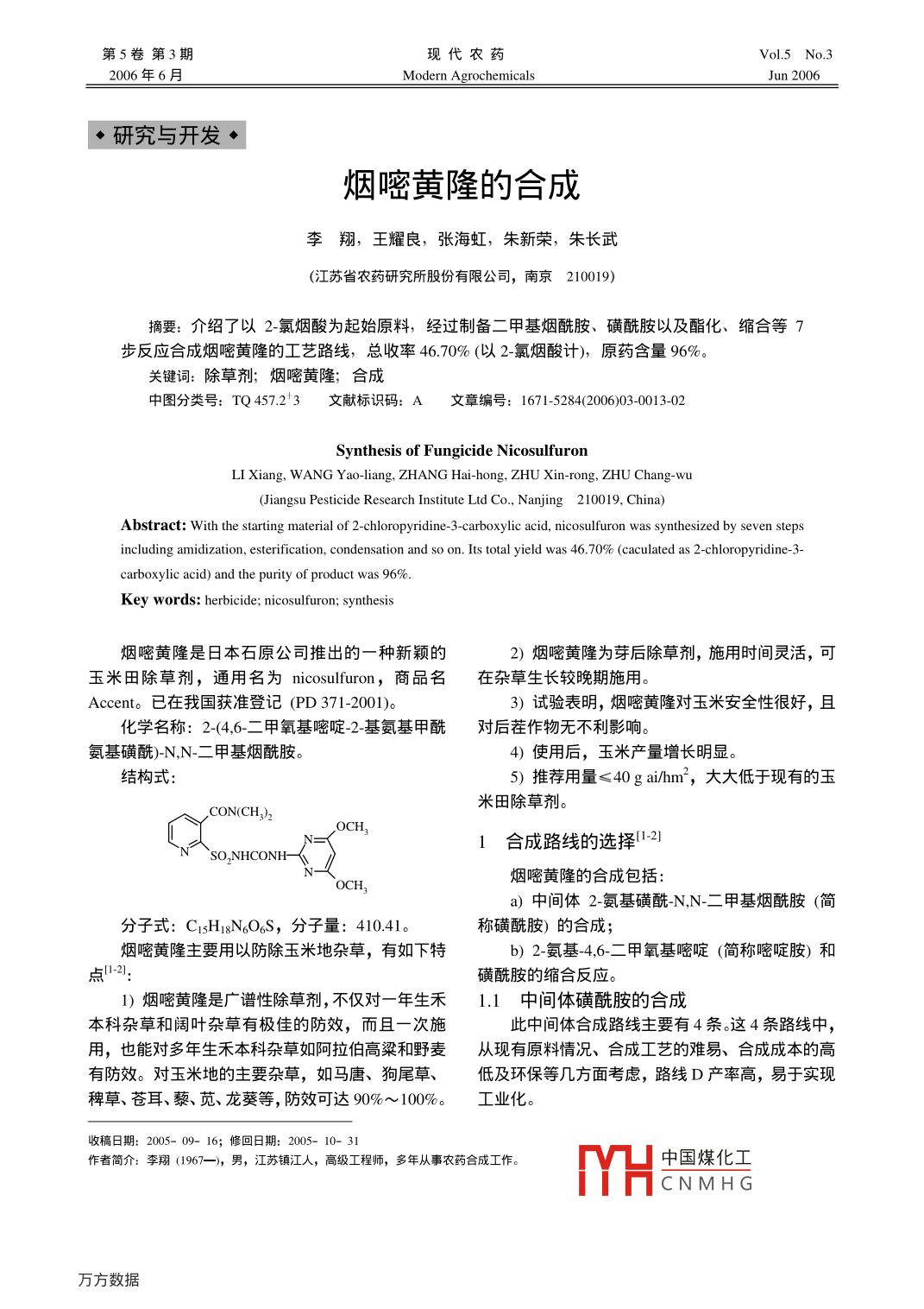 - 作者單位:江蘇省農(nóng)藥研究所股份有限公司