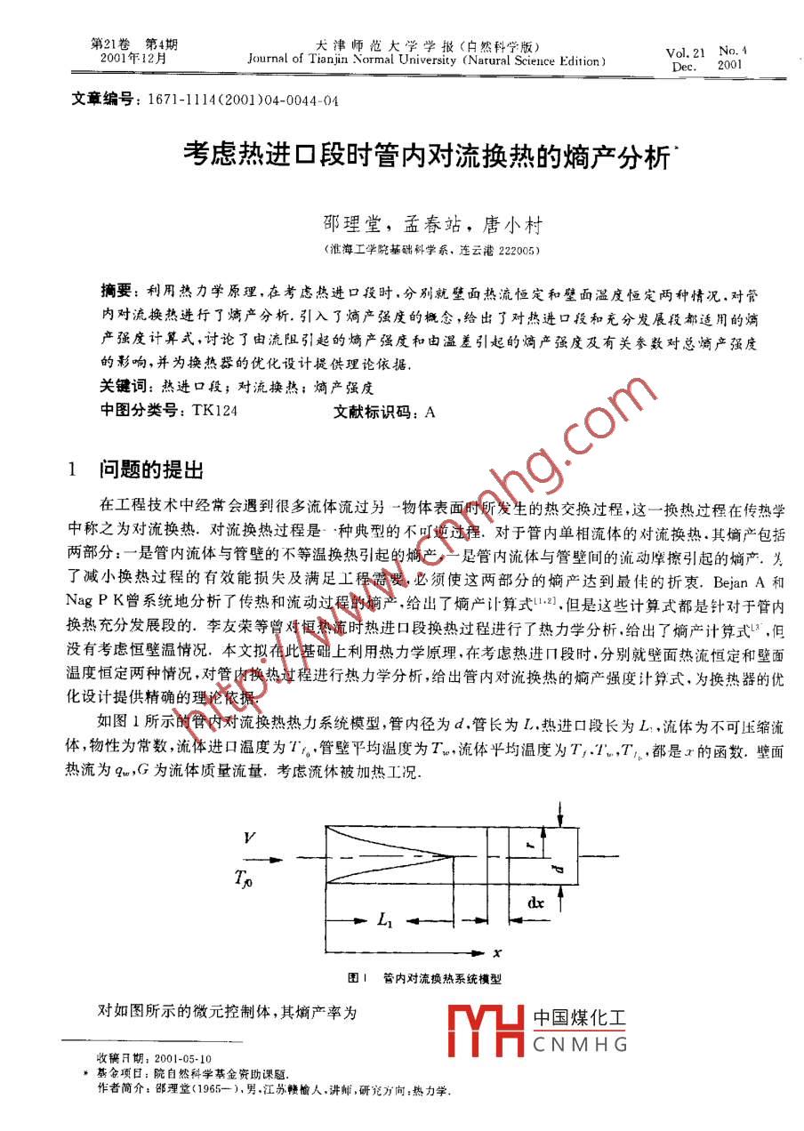 考慮熱進口段時管內(nèi)對流換熱的熵產(chǎn)分析