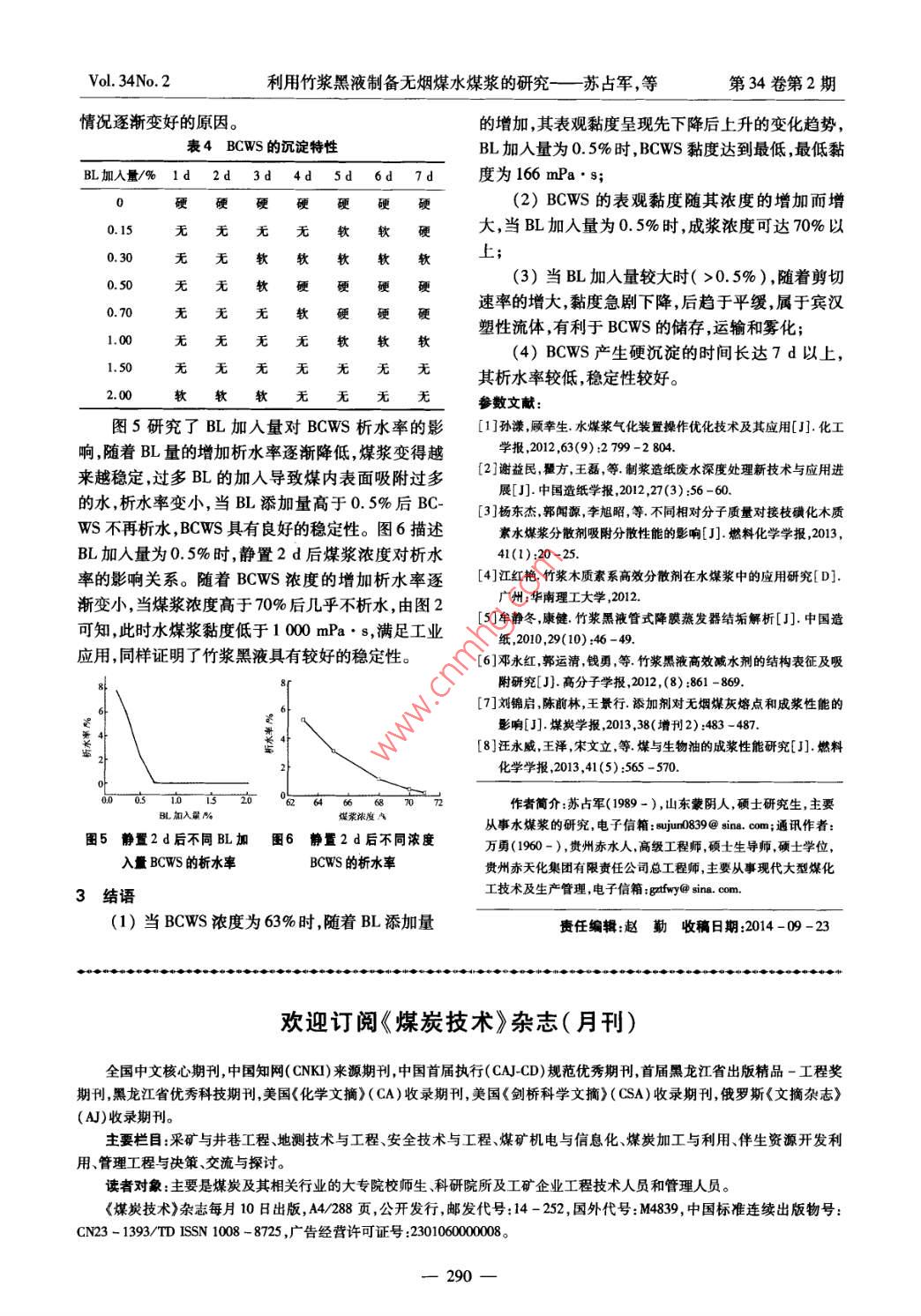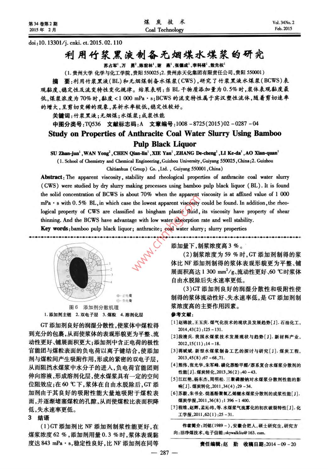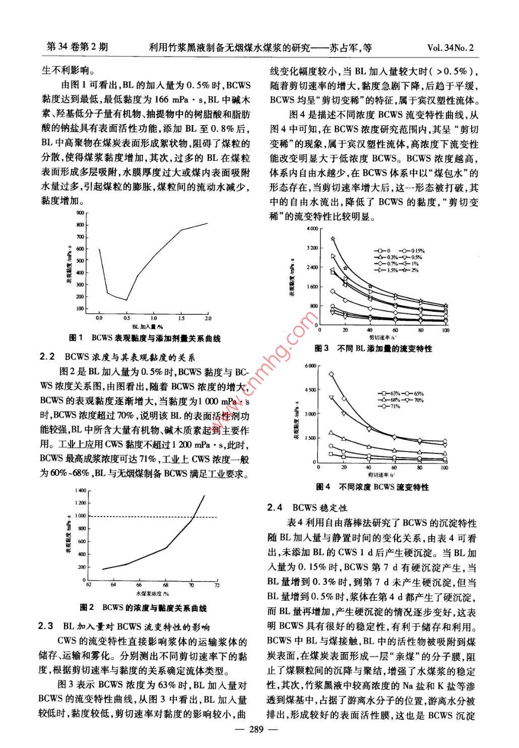 利用竹漿黑液制備無煙煤水煤漿的研究