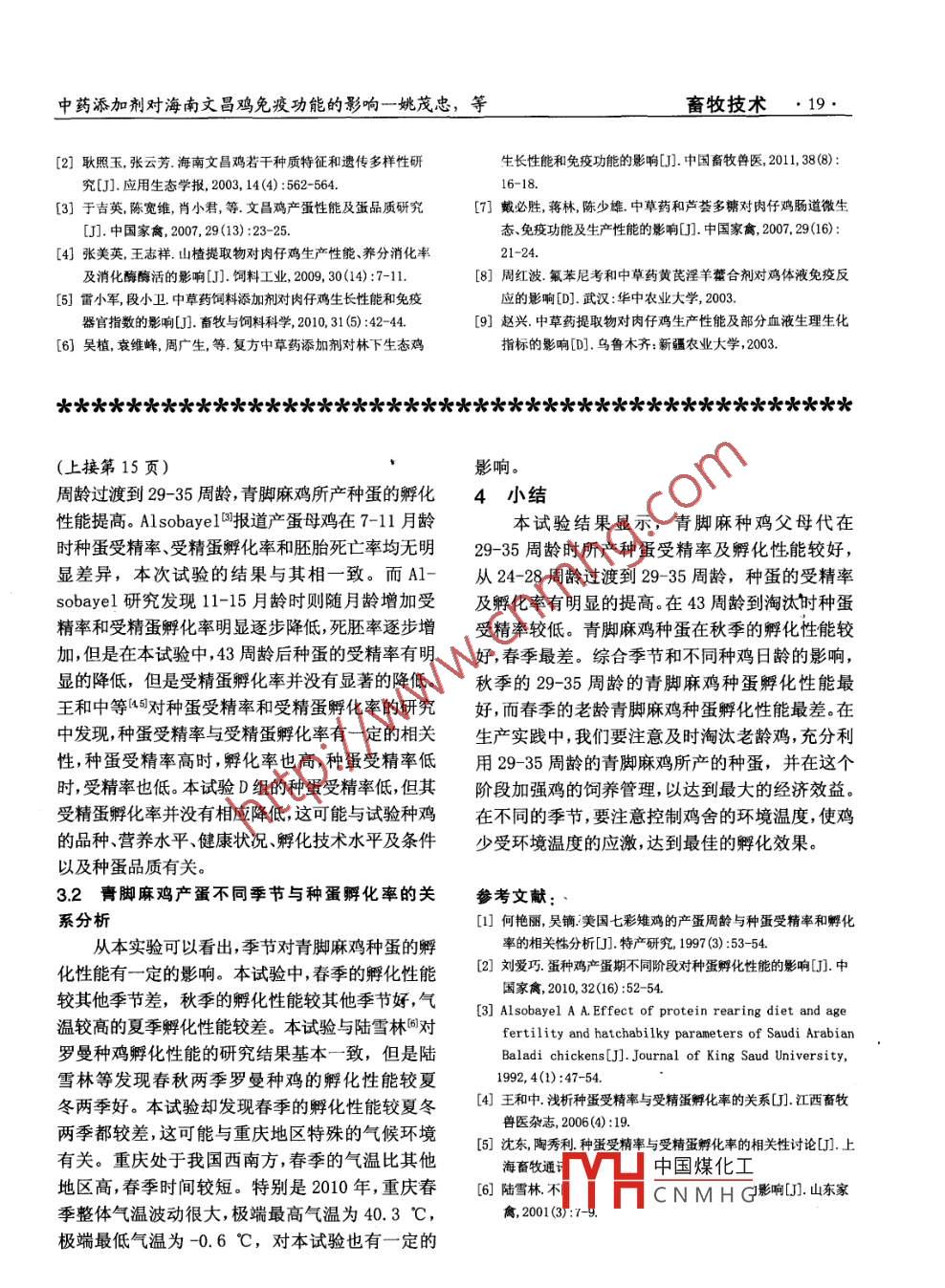 中藥添加劑對海南文昌雞免疫功能的影響