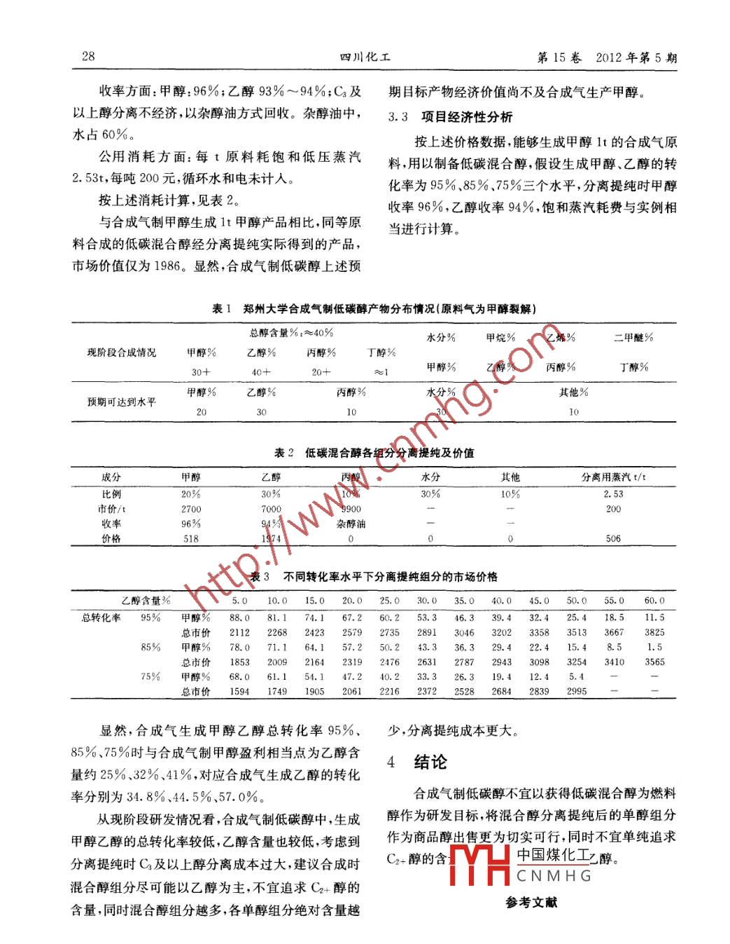 合成氣制低碳醇的經(jīng)濟(jì)性分析