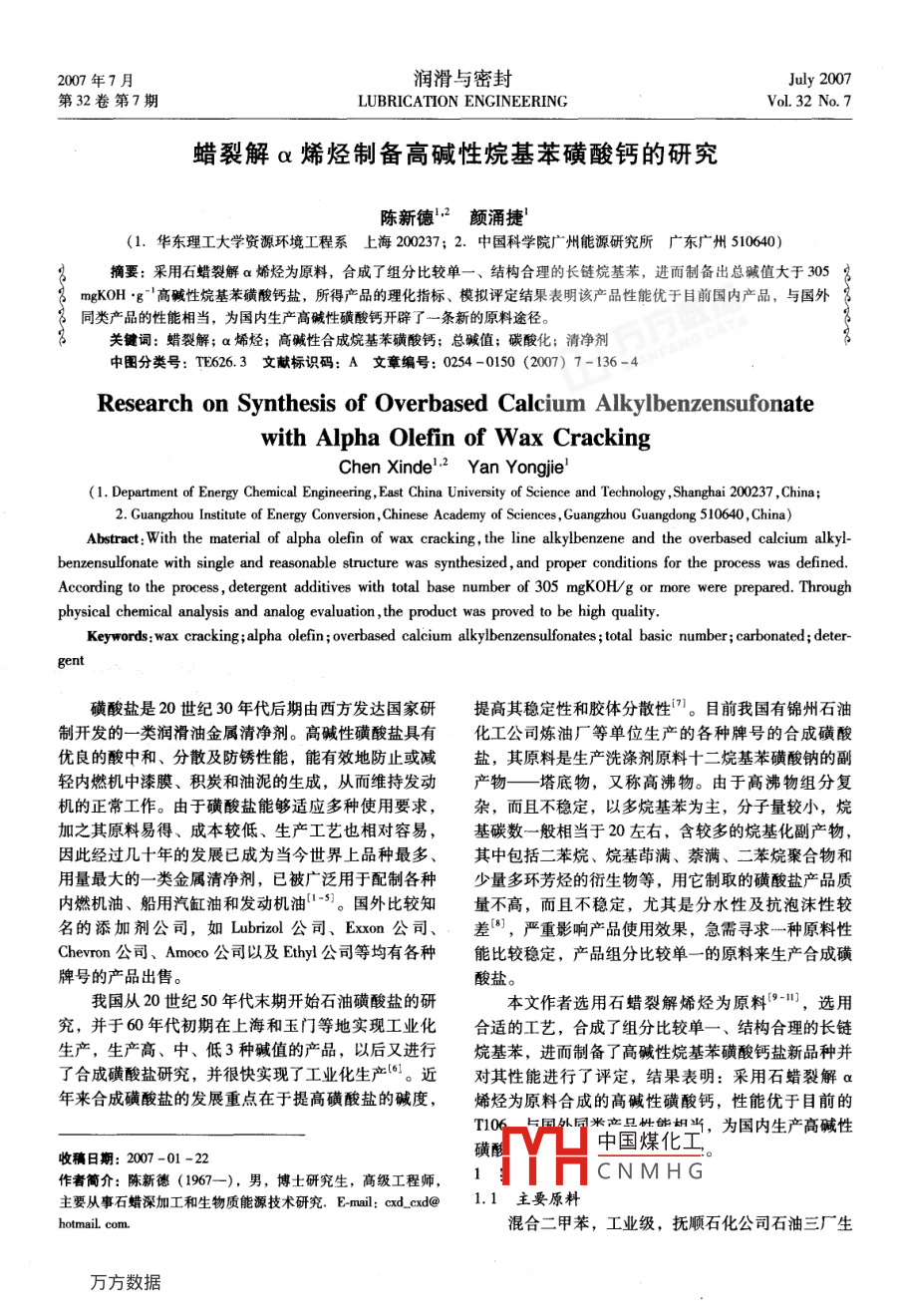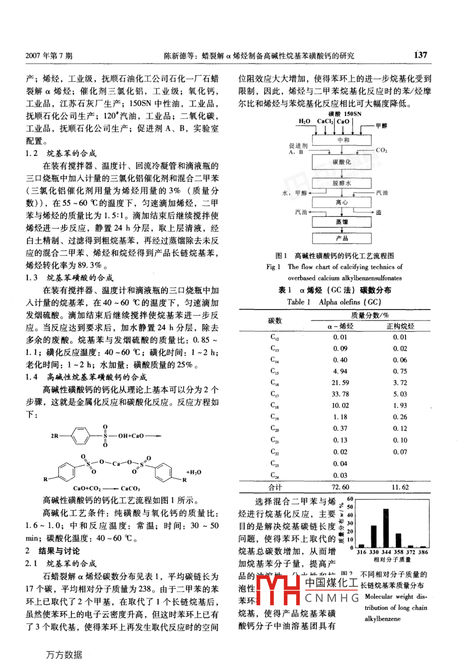 蠟裂解α烯烴制備高堿性烷基苯磺酸鈣的研究