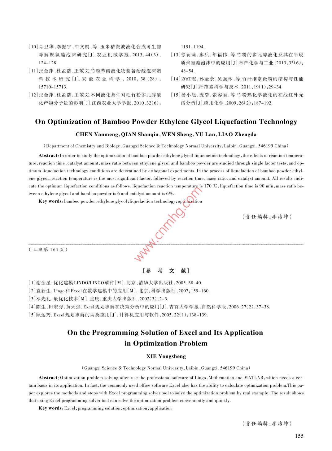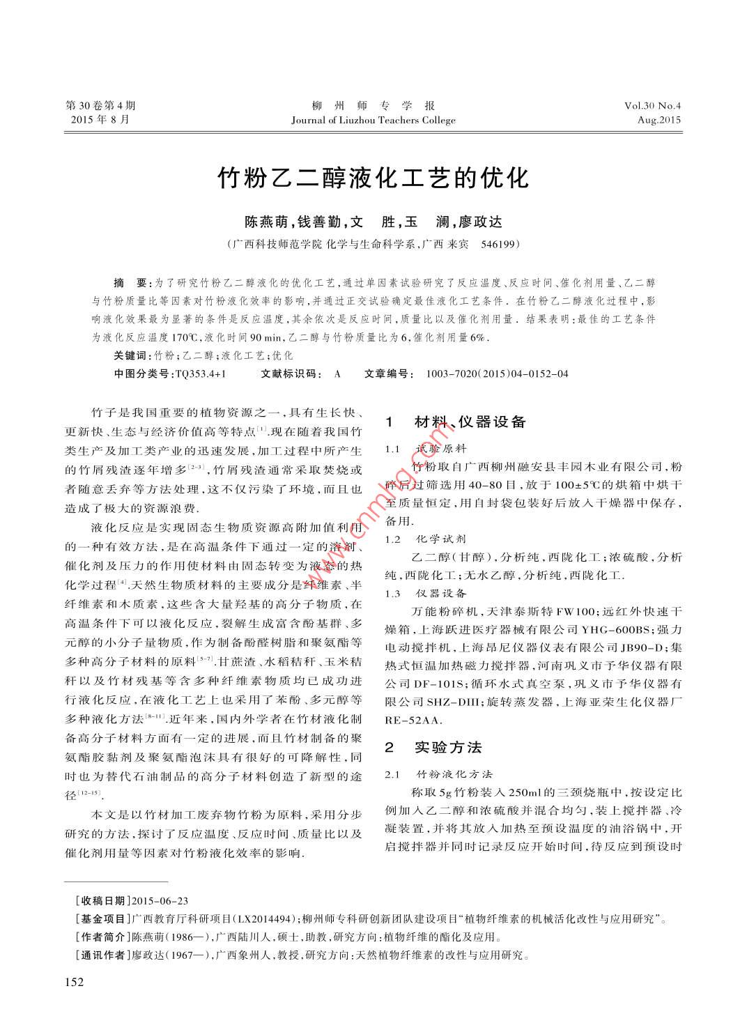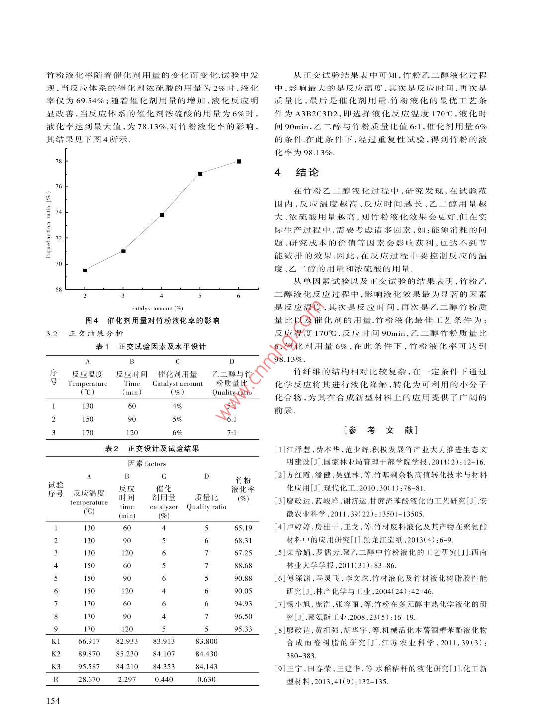 竹粉乙二醇液化工藝的優(yōu)化