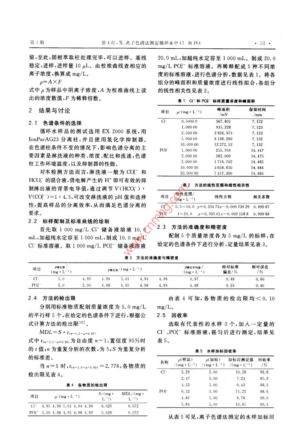 離子色譜法測定循環(huán)水中Cl-和PO43-