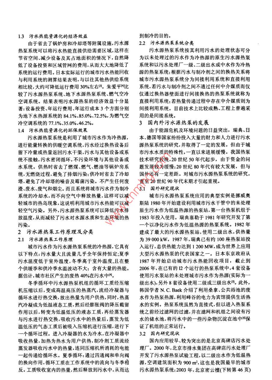 污水源熱泵的研究進(jìn)展