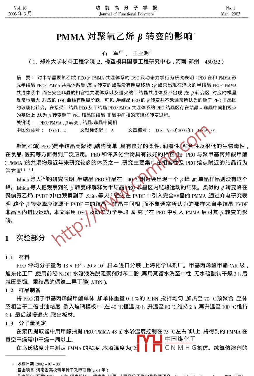PMMA對聚氧乙烯β轉(zhuǎn)變的影響