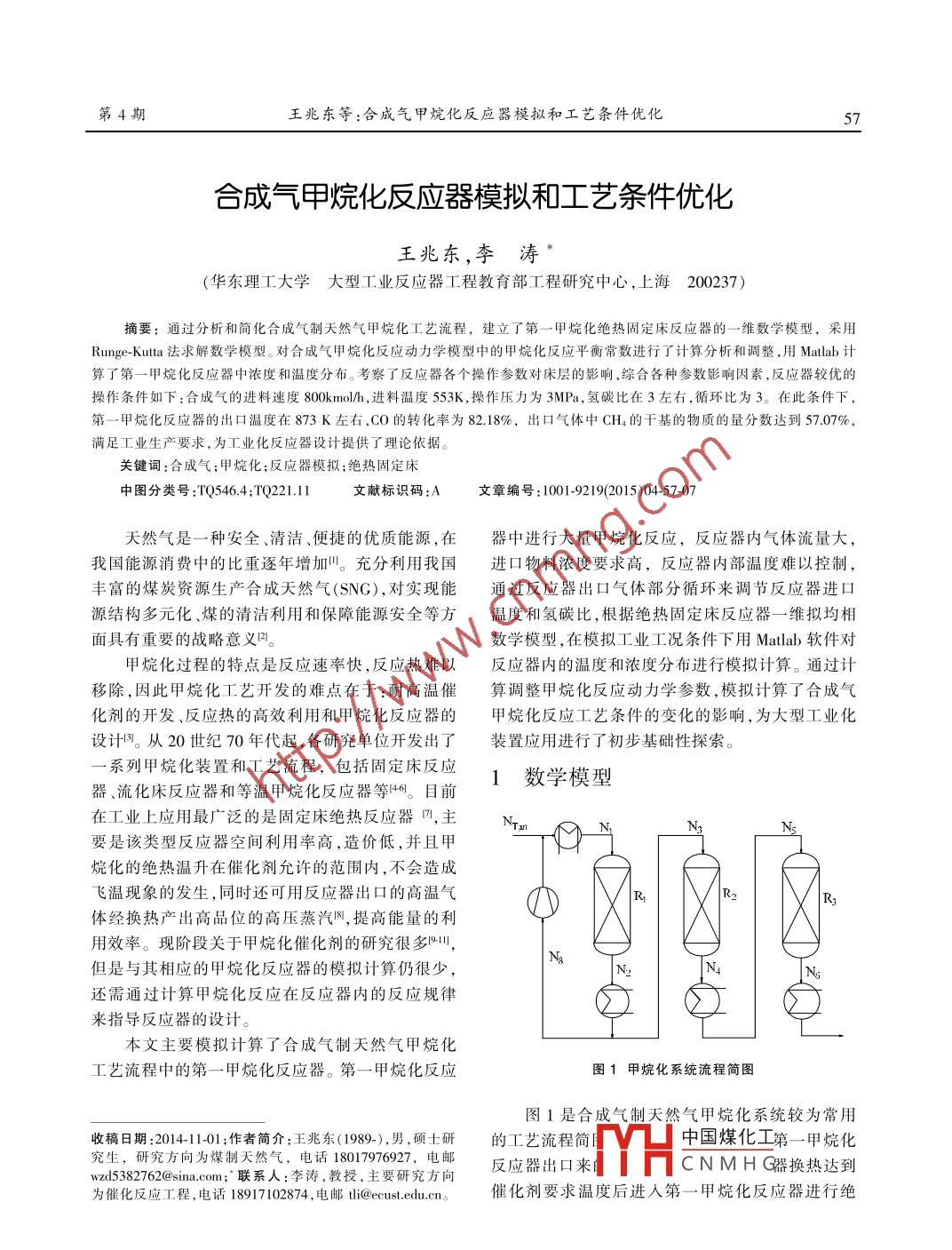 合成氣甲烷化反應器模擬和工藝條件優(yōu)化