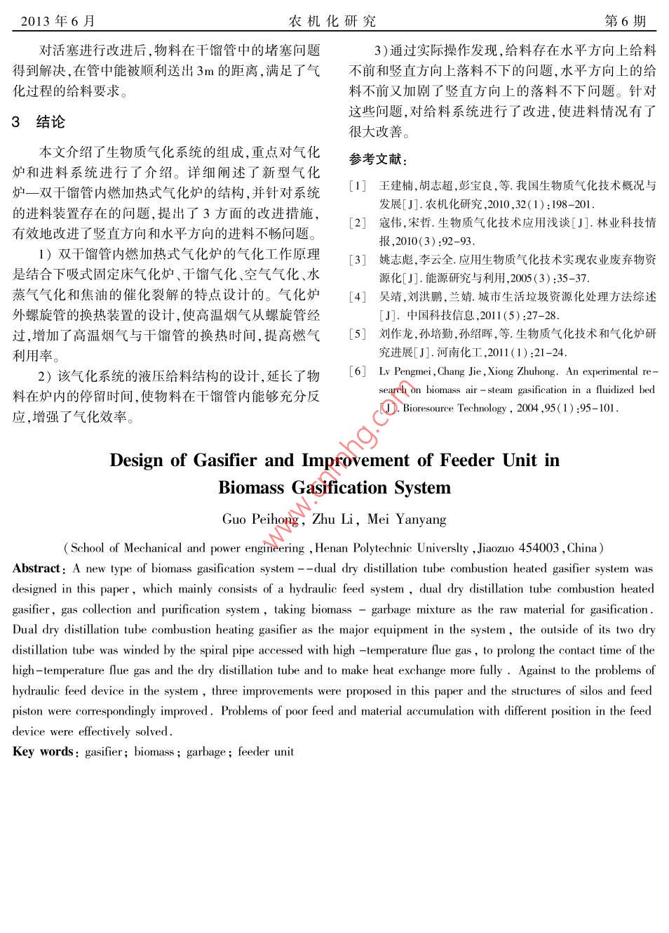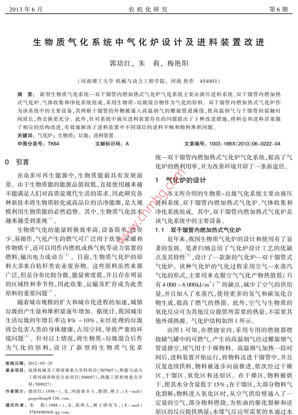 生物質(zhì)氣化系統(tǒng)中氣化爐設(shè)計及進(jìn)料裝置改進(jìn)