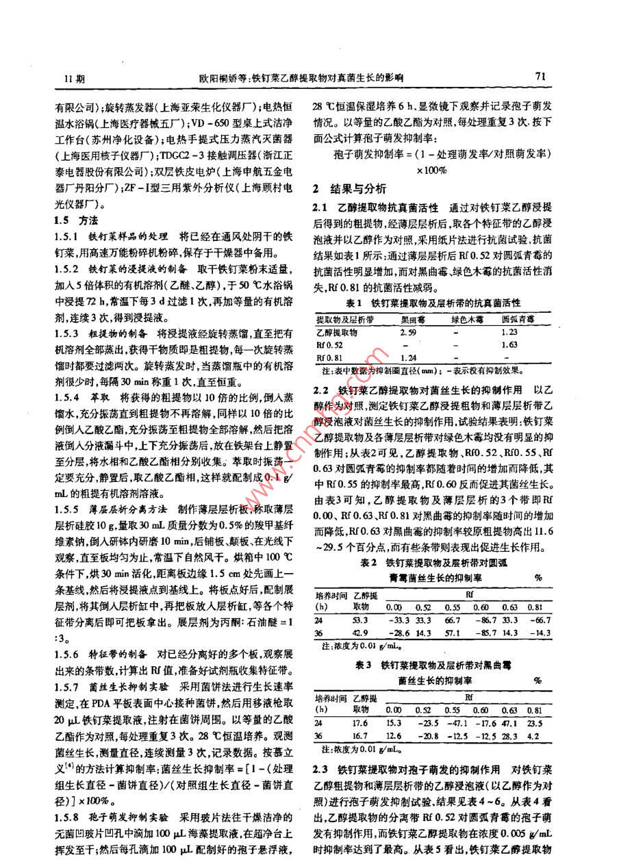 鐵釘菜乙醇提取物對真菌生長的影響