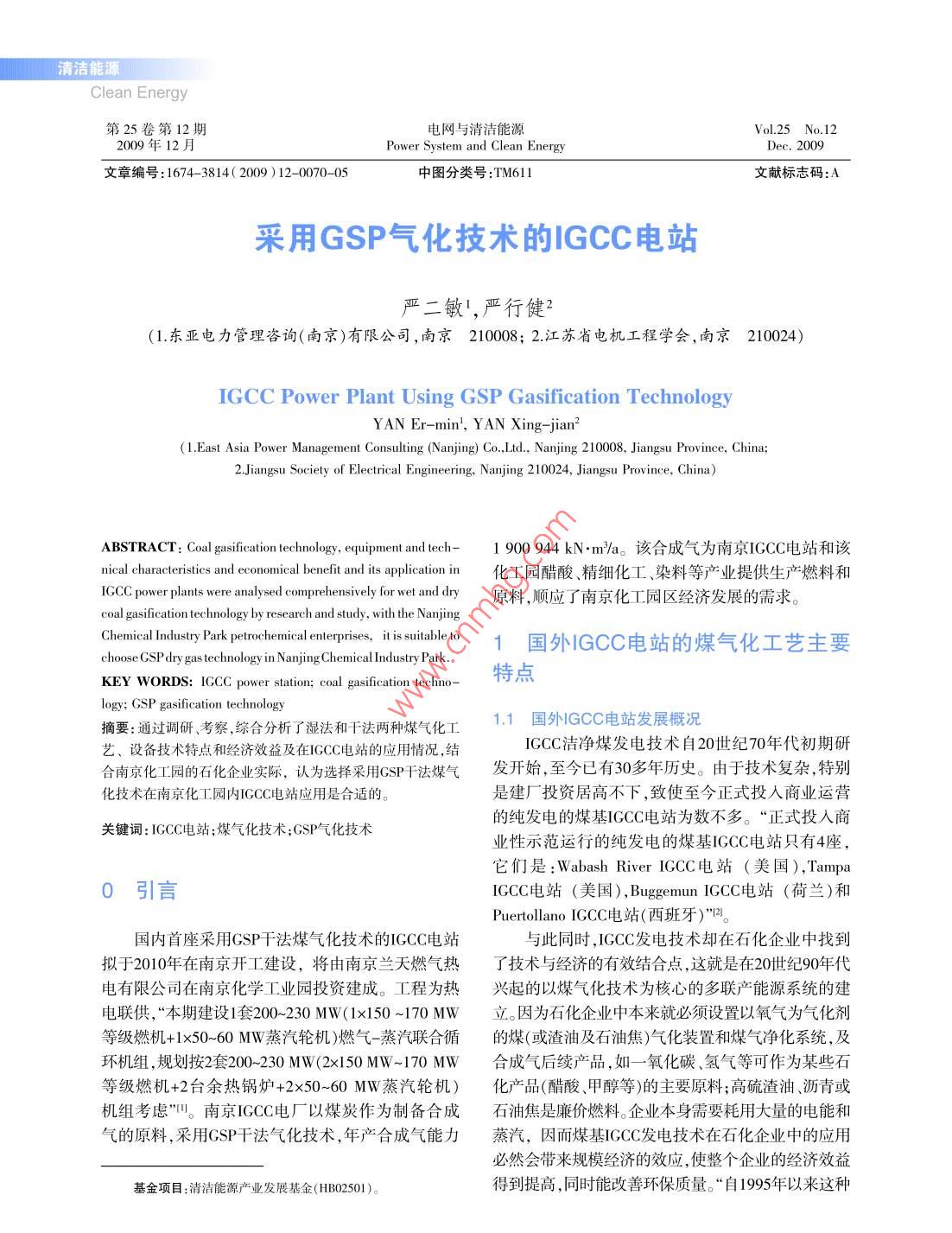采用GSP氣化技術(shù)的IGCC電站