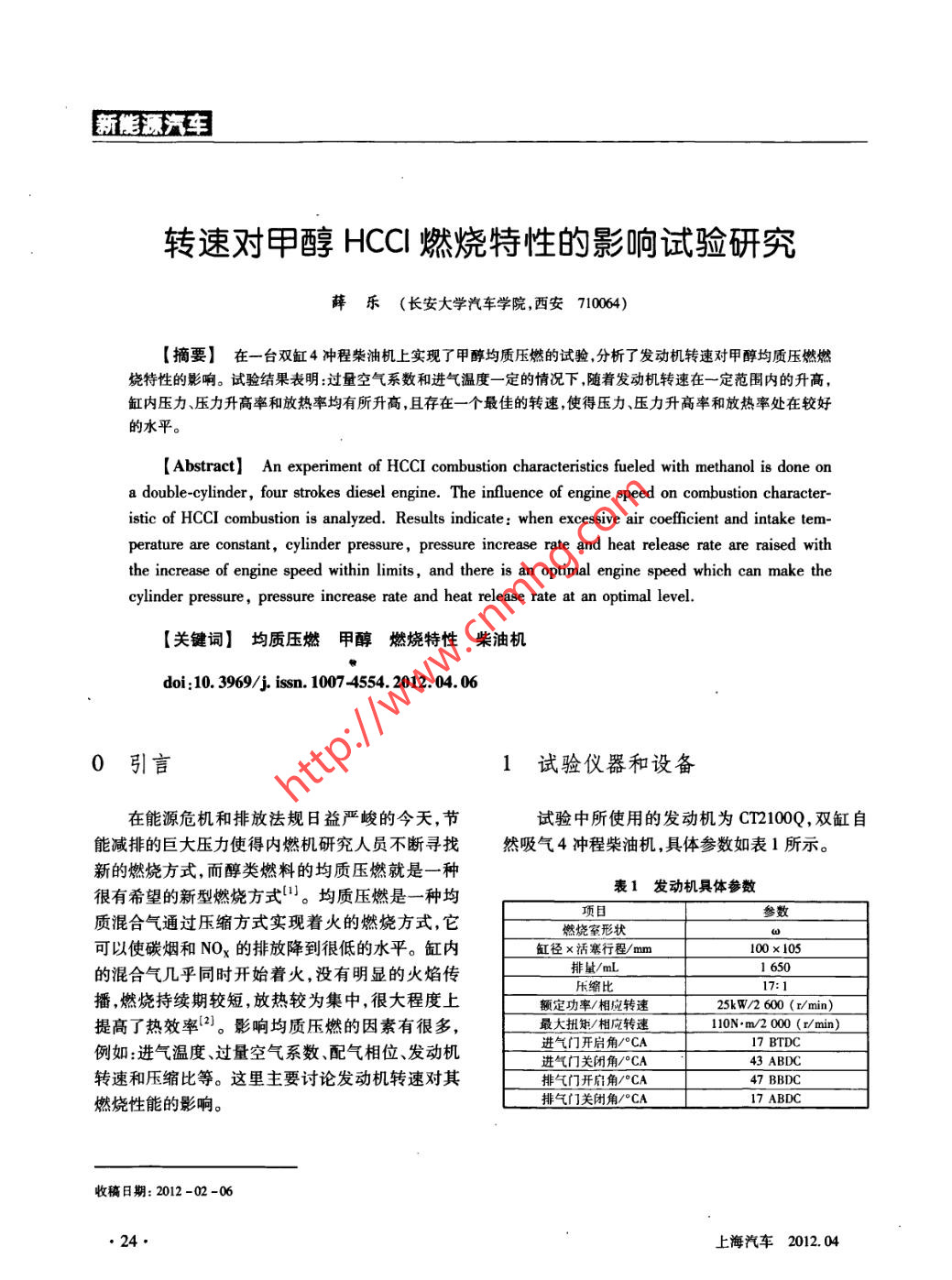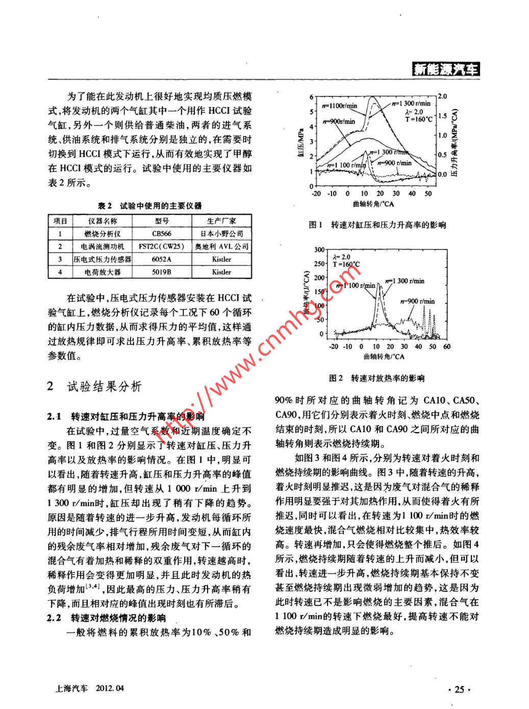 轉速對甲醇HCCI燃燒特性的影響試驗研究