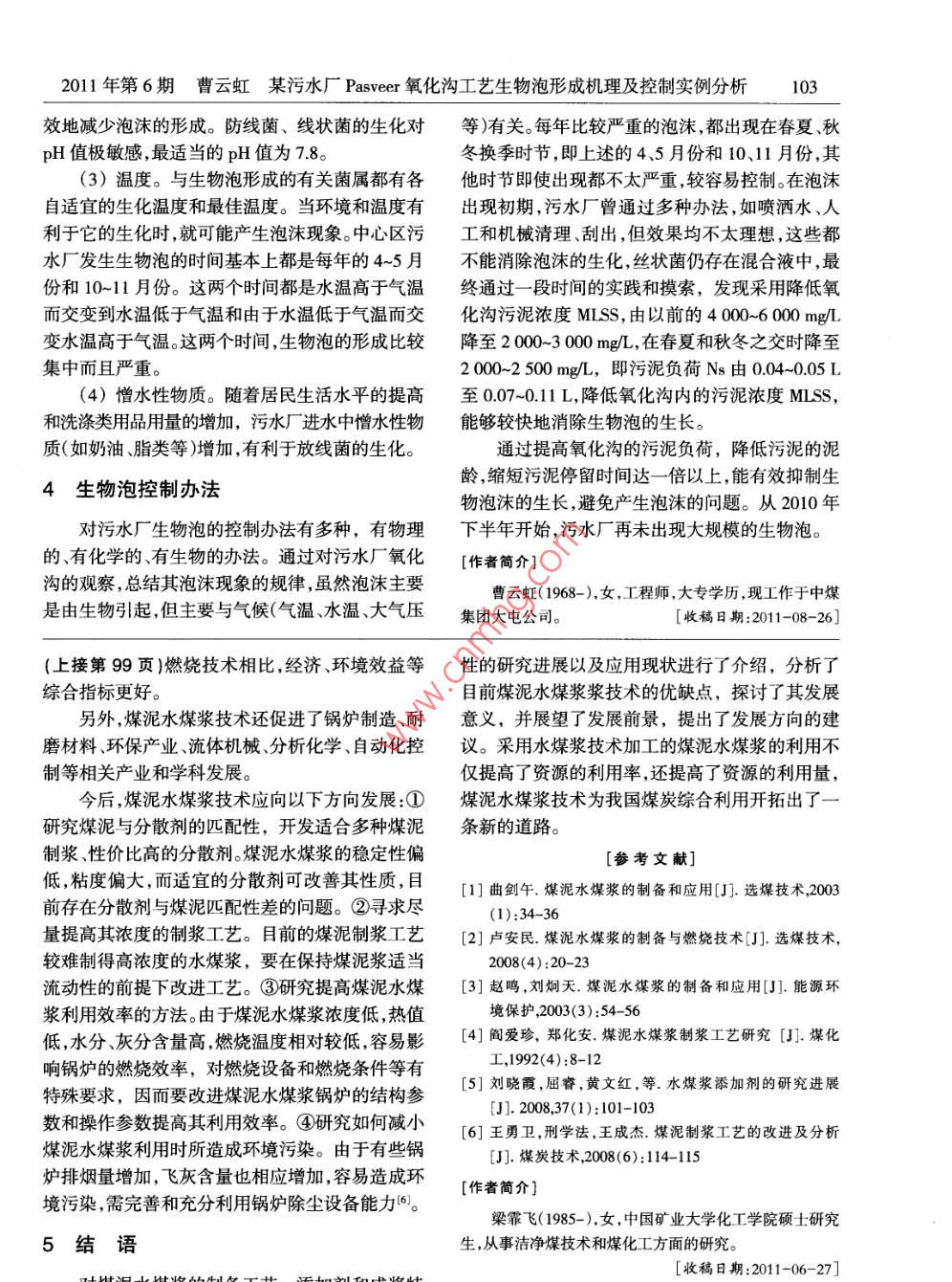 能源技術(shù)與管理2011年第6期doi:10.3969isn.1672-99432011.06041資源綜合利用煤泥水煤漿技術(shù)研究進展梁霏飛,吳國光,孟獻梁,張玉良,云增杰,羅曉強,張靜(中國礦業(yè)大學(xué)化工學(xué)院,江蘇徐州221116)[摘要]隨著選煤技術(shù)的發(fā)展,煤泥產(chǎn)量日益上升。選煤廠煤泥粒度細、灰分高、含水量大,不經(jīng)適當處理難以有效利用。煤泥水煤漿是一種高灰水煤漿,是依托水煤漿技術(shù)而發(fā)展的一種新型燃料,有廣泛的應(yīng)用前景。針對煤泥水煤漿工藝、添加劑和成漿特性進行闡述,分析了發(fā)展煤泥水煤漿技術(shù)的意義,展望了發(fā)展前景和發(fā)展方向。[關(guān)鍵詞]煤泥;水煤漿;添加劑;成漿特性;發(fā)展前景[中圖分類號]TQ536[文獻標識碼]B[文章編號]1672-9943(2011)060984020引言粒及雜物外排。優(yōu)點是濃度較易控制,制漿能力較大;缺點是如果干煤粉量太大就很難被水迅速潤煤泥是由微細粒煤、粉化矸石和水組成的粘濕,要求入料濃度不能變動太大,對人料中的大顆稠物,具有粒度細、微粒含量多、水分和灰分髙、熱粒及雜物較難控制,環(huán)境污染嚴重。值低、粘結(jié)性較強、內(nèi)聚力大等特點。隨著選煤技兗州礦業(yè)集團根據(jù)經(jīng)驗將煤泥干燥后篩分后術(shù)的進步,副產(chǎn)品煤泥的發(fā)熱量越來越低,大部分確定級配方案制漿,通過煤質(zhì)分析和煤漿穩(wěn)定性作為廢料遺棄,占用土地資源。有的礦區(qū)缺乏對煤試驗,選出了效果好、價格便宜、使用方便的添加泥的綜合治理,導(dǎo)致煤泥泛濫,選煤生產(chǎn)受到制劑,還找出了不同時間取樣的煤泥試樣的最佳制約,甚至影響礦井生產(chǎn),合理利用煤泥資源對選煤漿條件。企業(yè)意義重大。煤泥水煤漿技術(shù)利用煤泥作為12濕法制漿工藝原料,是在水煤漿技術(shù)基礎(chǔ)上發(fā)展起來的一種新煤泥濕法制漿工藝是將煤泥直接磨漿,磨后的制漿工藝,減少了濃縮、浮選以及真空過濾等環(huán)產(chǎn)品經(jīng)過濾、攪拌調(diào)漿。優(yōu)點是不需增加太多的設(shè)節(jié),生產(chǎn)成本低,簡化了選煤廠的煤泥水處理系備,工藝簡單、操作方便,不改變原煤泥粒度分布,統(tǒng),是國家鼓勵發(fā)展的資源綜合利用項目2??芍频眯阅芰己玫臐{體,環(huán)境污染小;缺點是難以1煤泥水煤漿工藝研究進展制得較高濃度的水煤漿,對入料中的大顆粒及雜物也較難控制。傳統(tǒng)的煤泥制漿工藝優(yōu)勢是集成了煤泥制開灤呂家沱礦采用旋流器組濕法制漿系統(tǒng)漿、污水處理、型煤型焦生產(chǎn)及煤漿氣化、高濃度濃縮機底流受壓力作用從而給入旋流器。底流和煤漿管道遠距離輸送等技術(shù),是在現(xiàn)有資源和技溢流分別給入制漿桶和煤泥沉淀池,制漿桶中漿術(shù)前提下的創(chuàng)新。缺陷是選用設(shè)備數(shù)量多、項目投體泵送至篩子去除大顆粒和雜物,之后給入儲漿資大,制約了產(chǎn)業(yè)化進程,沒有專用制漿設(shè)備,代桶,制得的煤泥水煤漿由曲桿泵送到爐前;邢臺礦用設(shè)備效率低、能耗大,影響經(jīng)濟效益和市場推務(wù)局東龐煤礦采用濃縮機濕法制漿系統(tǒng),選煤廠近年來,依托水煤漿技術(shù)開發(fā)出的煤泥水煤漿濃縮機底流經(jīng)過泵進入二次濃縮機中,二次濃縮工藝主要包括濕法制漿工藝和干法制漿工藝,合機溢流給入煤泥沉淀池,底流去除雜物之后給入理的制漿工藝有利于提高質(zhì)量和降低成本,煤泥攪拌池,攪拌池中的物料泵送到鍋爐1。水煤漿工藝有待于進一步研究。1.3煤泥水煤漿工藝最新進展干法制漿工藝棗莊礦業(yè)集團高莊煤礦建成7Mta的中灰煤煤泥干法制漿工藝是將烘干的煤泥用輸送機泥水煤漿生產(chǎn)線,利用煤泥制備高濃度水煤漿技運至制漿桶后加水攪拌,經(jīng)泵送到篩子上去除粗術(shù)把中灰煤泥制備成水煤漿。工藝為煤泥經(jīng)濃縮2011年第6期梁霏飛,等煤泥水煤漿技術(shù)研究進展化劑和少量水,煤餅經(jīng)雙軸攪拌機的攪拌捏混,形發(fā)分含量,揮發(fā)分越高越容易點燃,火焰穩(wěn)定性越成具有一定流動性的水煤漿。經(jīng)攪拌后,小部分水好。從燃燒角度來看,制漿用煤的揮發(fā)分含量不能煤漿返回攪拌機,大部分水煤漿送至球磨機,產(chǎn)品太低,通常鍋爐要求>25%,爐窯要求>15%。從經(jīng)濾漿器過濾后,加入穩(wěn)定劑并攪拌均勻泵送至泵送和霧化的角度來看,要保證漿體在常溫和剪膠體磨,經(jīng)剪切、乳化作用形成成品。切率為100s4時粘度不高于10~12Pas兗礦集團八一水煤漿公司用1臺400mm穩(wěn)定性:表示顆??钩两档哪芰?決定能否穩(wěn)8500mm的球磨機,并應(yīng)用徐州礦源濃漿泵供料定存放、輸送。影響穩(wěn)定性的因素有煤的變質(zhì)程系統(tǒng),將高莊煤礦煤泥直接制漿供給八一熱電廠,度、礦物組成、煤漿濃度、添加劑等。低變質(zhì)程度的生產(chǎn)能力15000v月。系統(tǒng)至今運行正常,產(chǎn)品質(zhì)煤漿穩(wěn)定性通常比高變質(zhì)程度的好;礦物質(zhì)吸水量穩(wěn)定。另外,在高莊礦工業(yè)廣場范圍內(nèi)建設(shè)煤泥降低了漿體中水分,同時煤中的高價金屬離子溶水煤漿制備廠,許多設(shè)施和選煤廠共用,節(jié)約了大出后吸附在煤表面使親水性增強,穩(wěn)定性提高;煤量資金。漿濃度越高穩(wěn)定性越好,因為固體含量增加使煤兗州礦業(yè