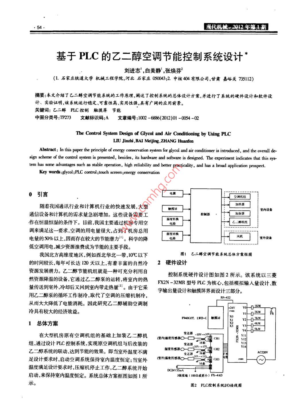 基于PLC的乙二醇空調(diào)節(jié)能控制系統(tǒng)設(shè)計(jì)