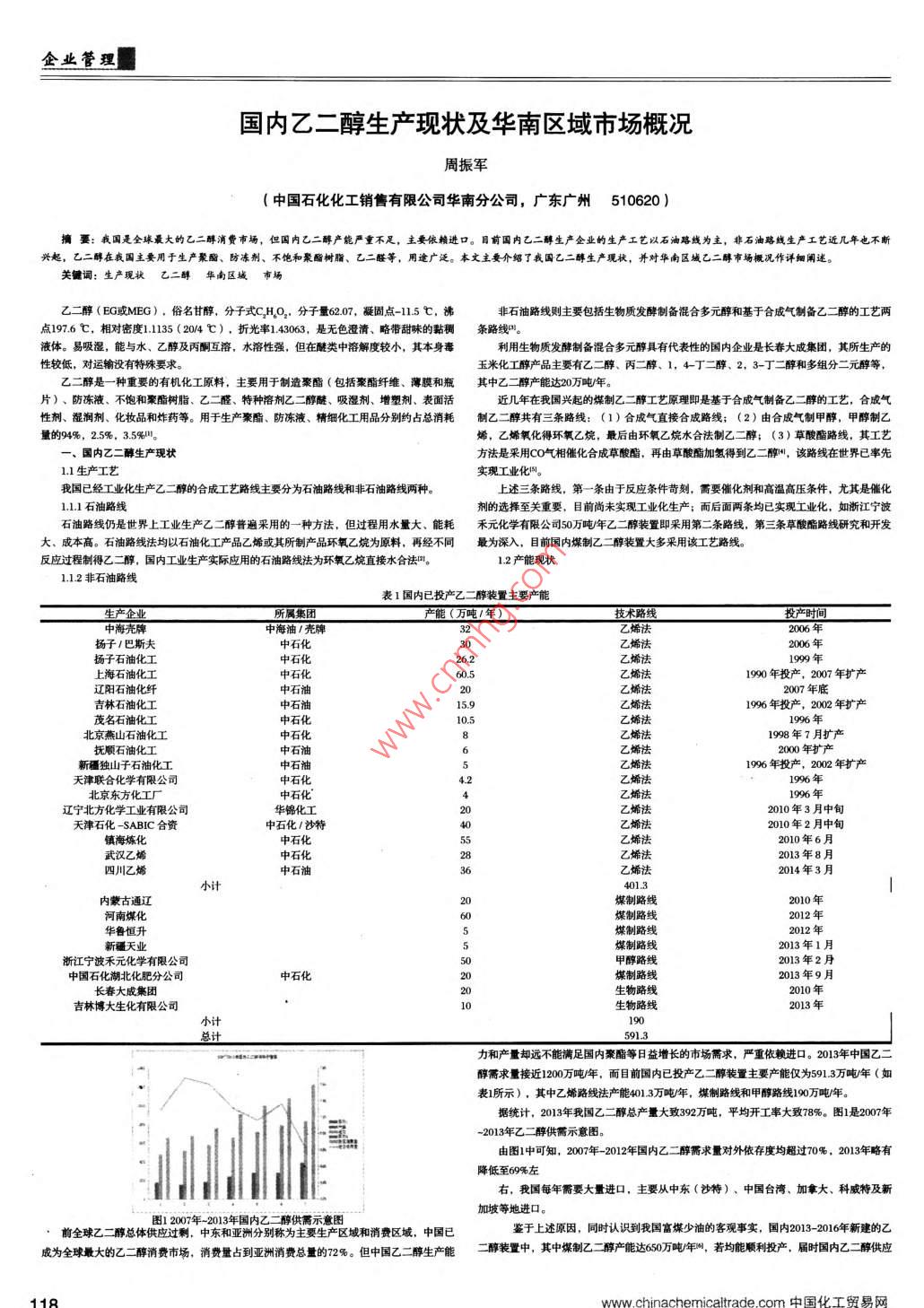 國內乙二醇生產(chǎn)現(xiàn)狀及華南區(qū)域市場概況