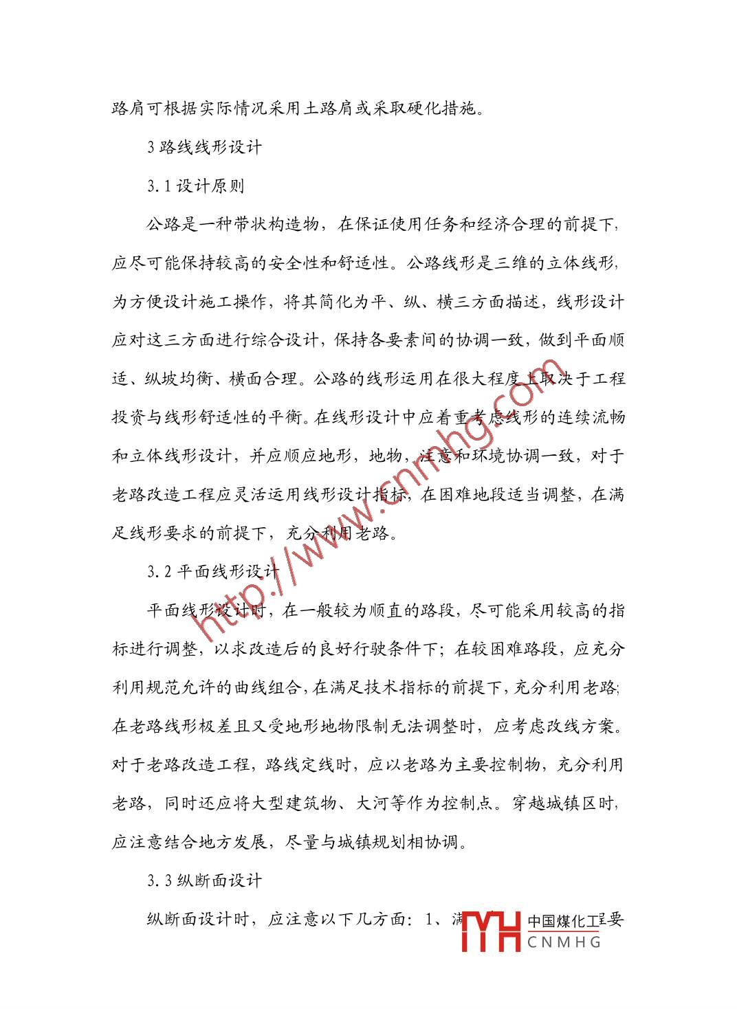 公路改造設(shè)計(jì)李立新內(nèi)蒙古烏蘭察布市公路勘察設(shè)計(jì)院集寧012000摘要:近年來(lái),隨著國(guó)民經(jīng)濟(jì)的快速發(fā)展,交通量迅猛增長(zhǎng),現(xiàn)有的公路已不堪重負(fù),難以承擔(dān)交通運(yùn)輸發(fā)展的需求,因此國(guó)家、地方各級(jí)部門加大了對(duì)交通基礎(chǔ)設(shè)施的投入,自治區(qū)提出對(duì)干線公路網(wǎng)實(shí)施網(wǎng)化改造工程,對(duì)區(qū)域內(nèi)干線公路逐步實(shí)施改造。筆者參加了區(qū)域內(nèi)多條公路改造的設(shè)計(jì),對(duì)公路改造設(shè)計(jì)有一定的體會(huì)和認(rèn)識(shí)。關(guān)鍵詞:公路改造中圖分類號(hào):Ⅺ734文獻(xiàn)標(biāo)識(shí)碼:A文章編號(hào)1老路現(xiàn)狀調(diào)查由于是對(duì)原有公路改造,對(duì)老路現(xiàn)狀調(diào)查十分重要,老路的現(xiàn)狀直接影響到改造方案、工程投資。1平、縱線形現(xiàn)狀本區(qū)域內(nèi)老路一般建于20世紀(jì)六、七十年代,建造時(shí)一般無(wú)正規(guī)的平、縱線形設(shè)計(jì),所以老路的平縱線形通常達(dá)不到設(shè)計(jì)要求,需要部分調(diào)整。只有對(duì)老路的平縱線形有基本了解,才能決定線形調(diào)整的幅度,一般情況下,對(duì)老路平面需測(cè)試彎道數(shù)、偏角大小、彎道半徑、交點(diǎn)間距等,對(duì)老路縱斷面需測(cè)試坡度、坡長(zhǎng)等指標(biāo)。老路如果線型較好或者可以通過(guò)微調(diào)能達(dá)標(biāo)的,在平縱面設(shè)計(jì)中均考慮充分利用老路;如果老路線形極差,如彎道多、偏角大、半徑小、交點(diǎn)間距極短,且受地形、地物的限制,則考慮改線中國(guó)煤化工CNMHG1.2路基、路面現(xiàn)狀路基、路面現(xiàn)狀調(diào)查包括路基、路面寬度、結(jié)構(gòu)形式及近凡年大修改造情況等。只有對(duì)老路路基、路面情況充分了解,在路面結(jié)構(gòu)補(bǔ)強(qiáng)設(shè)計(jì)時(shí)才能心中有數(shù),設(shè)計(jì)方案才能經(jīng)濟(jì)合理1.3彎沉測(cè)試為評(píng)價(jià)老路路面結(jié)構(gòu)的整體強(qiáng)度,應(yīng)對(duì)老路面進(jìn)行彎沉測(cè)試,對(duì)測(cè)試結(jié)果應(yīng)根據(jù)彎沉值大小、路面結(jié)構(gòu)情況分段整理計(jì)算,以便于下階段路面結(jié)構(gòu)補(bǔ)強(qiáng)設(shè)計(jì)。1.4橋涵現(xiàn)狀區(qū)域內(nèi)河網(wǎng)密集,一般公路上橋涵較多,對(duì)老橋涵拓寬改造還是拆除重建由老橋涵現(xiàn)狀決定,所以應(yīng)對(duì)老橋涵的跨徑、凈寬、荷載標(biāo)準(zhǔn)、結(jié)構(gòu)形式、使用情況、是否為礙航建筑物、橋頭接線線形等做充分、詳細(xì)的調(diào)查,對(duì)大、中橋荷載標(biāo)準(zhǔn)不能確認(rèn)時(shí),應(yīng)做承載能力試2主要技術(shù)指標(biāo)的選用2.1公路等級(jí)公路等級(jí)應(yīng)根據(jù)公路網(wǎng)的規(guī)劃和遠(yuǎn)景交通量,結(jié)合公路的功能性質(zhì)從全局出發(fā)綜合確定2.2設(shè)計(jì)車速設(shè)計(jì)車速一般根據(jù)公路等級(jí)采用,但是在實(shí)際應(yīng)用中,應(yīng)結(jié)合公路的功能、性質(zhì)、交通組成等綜合確定,特別是對(duì)于老路改造工程,應(yīng)順應(yīng)地形地物,在保證行車安全、舒適的前TH中國(guó)煤化工勺角CNMHG度出發(fā),靈活地選用。對(duì)位于城市出入口的一級(jí)公路,混合交通嚴(yán)重,車速不宜太快,可參照城市道路標(biāo)準(zhǔn),采用80km/h的設(shè)計(jì)車速;對(duì)于二級(jí)公路,一般情況下應(yīng)采用80km/h設(shè)計(jì)車速。2.3路基標(biāo)準(zhǔn)橫斷面路基橫斷面直接影響到工程的規(guī)模和投資,路基標(biāo)準(zhǔn)橫斷面應(yīng)根據(jù)公路等級(jí)、交通量預(yù)測(cè)分析結(jié)果選擇,同時(shí)又應(yīng)綜合考慮路段功能性質(zhì)及交通組成,結(jié)合地形、地物、城鎮(zhèn)規(guī)劃,注意到綠化美化和環(huán)保,采用既能滿足道路通行能力、與城鎮(zhèn)規(guī)劃相適應(yīng)又經(jīng)濟(jì)合理、適應(yīng)地形地物的橫斷面2.3.1一級(jí)公路路基標(biāo)準(zhǔn)橫斷面區(qū)域內(nèi)改造為一級(jí)公路的均為區(qū)域間千線公路,不但交通量大,而且本區(qū)域內(nèi)一般公路沿線村莊密集,混合交通比較嚴(yán)重,根據(jù)《公路工程技術(shù)標(biāo)準(zhǔn)》和本地區(qū)經(jīng)驗(yàn),為適應(yīng)集鎮(zhèn)城市化的發(fā)展,一般采用快慢行道分開的三塊板形式。快車道采用雙向4車道,單向行車道寬2ⅹ3.75m,中央采用雙黃實(shí)線分隔對(duì)向行駛的交通流,兩側(cè)各的綠化分隔帶,2×5m慢車道,2×1m路肩,路基全寬為32m。2.3.2二級(jí)公路路基標(biāo)準(zhǔn)橫斷面二級(jí)公路路基橫斷面一般采用一幅路形式,寬度根據(jù)交通量及交通組成采用,一般分三種情況:(1)、如交通量較小,混合交通也不太嚴(yán)重,則路基全寬12皿m,路面寬m;(2)、如交通量一般,混合交通一般,則路基全寬15m,路面寬12m;(3)、如交通量較大,混合交通也較嚴(yán)重,則路基全寬17m,路面寬14m,并且用中國(guó)煤化工道CNMHG路肩可根據(jù)實(shí)際情況采用土路肩或采取硬化措施。3路線線形設(shè)計(jì)3.1設(shè)計(jì)原則公路是一種帶狀構(gòu)造物,在保證使用任務(wù)和經(jīng)濟(jì)合理的前提下,應(yīng)盡可能保持較高的安全性和舒適性