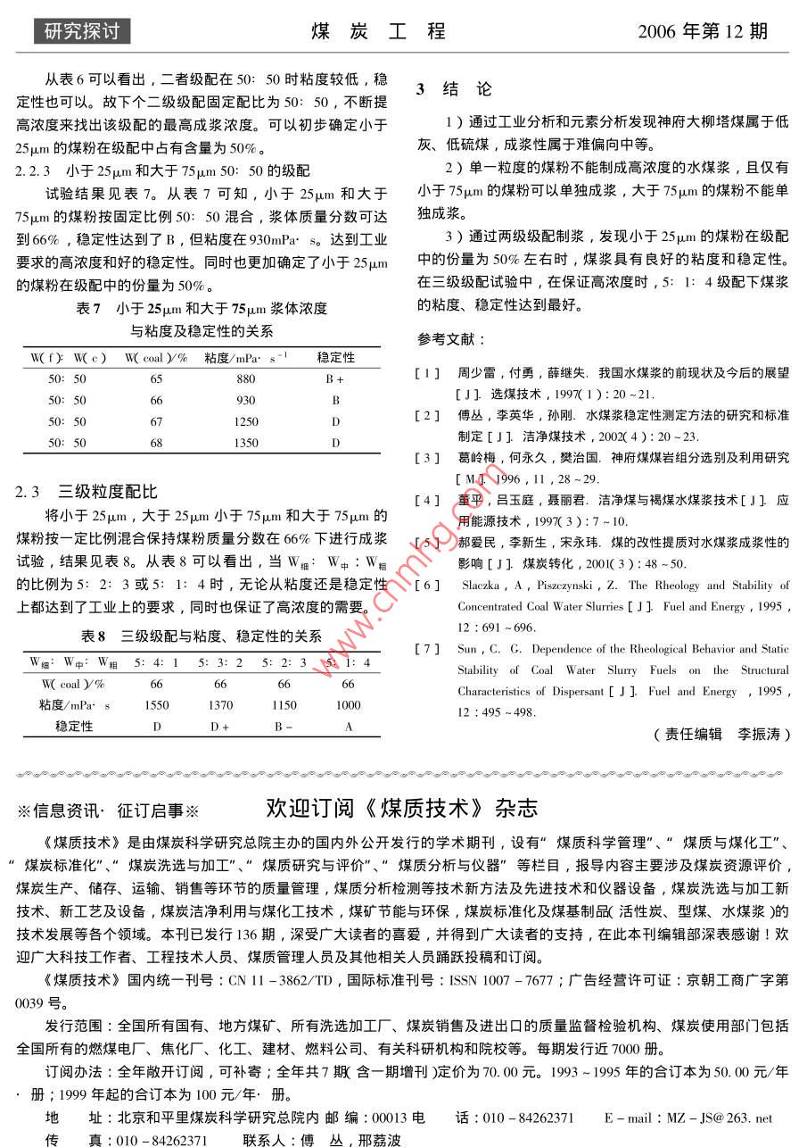 粒度配比對神府煤水煤漿穩(wěn)定性的影響