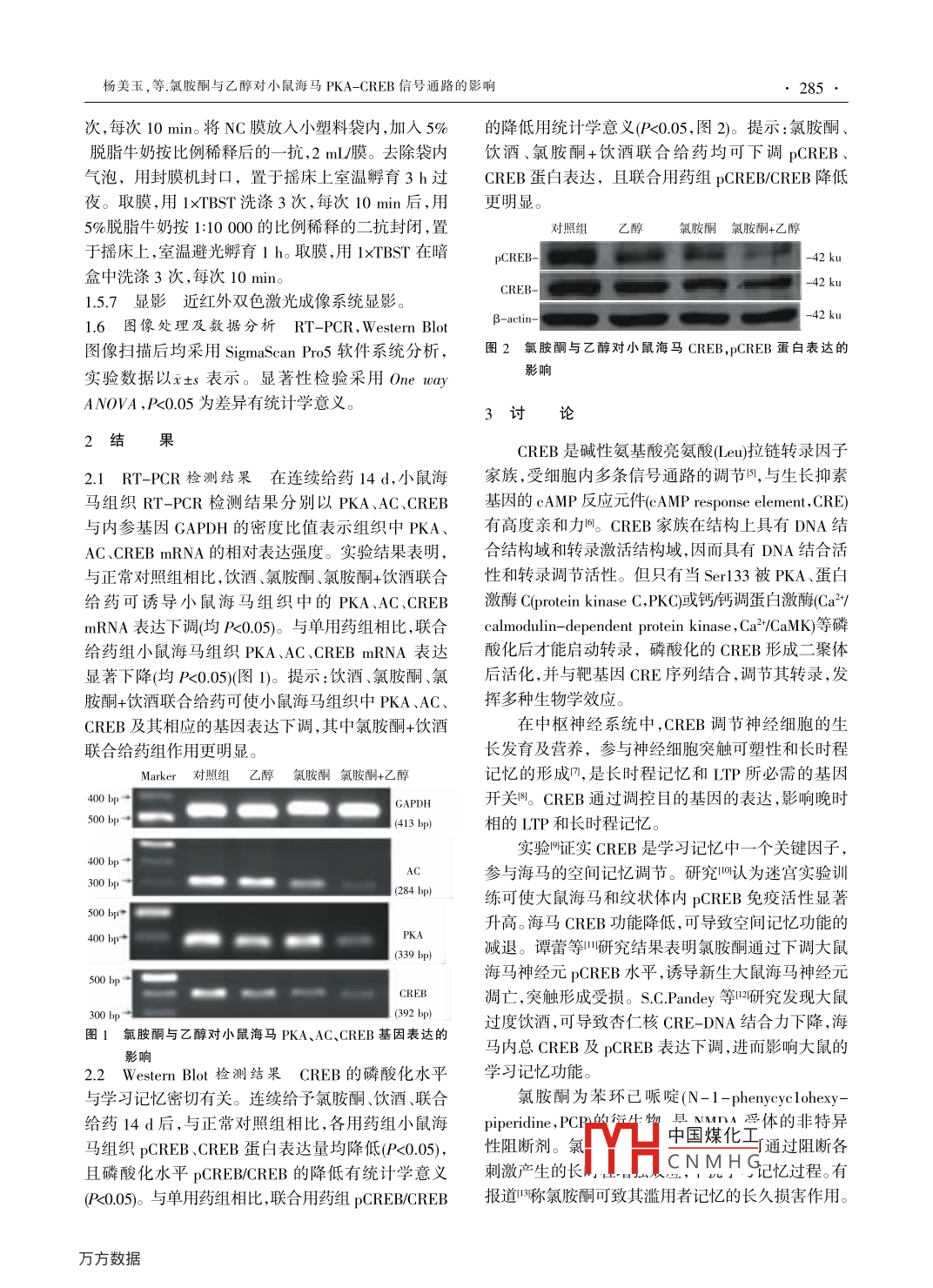 氯胺酮與乙醇對小鼠海馬PKA-CREB 信號通路的影響