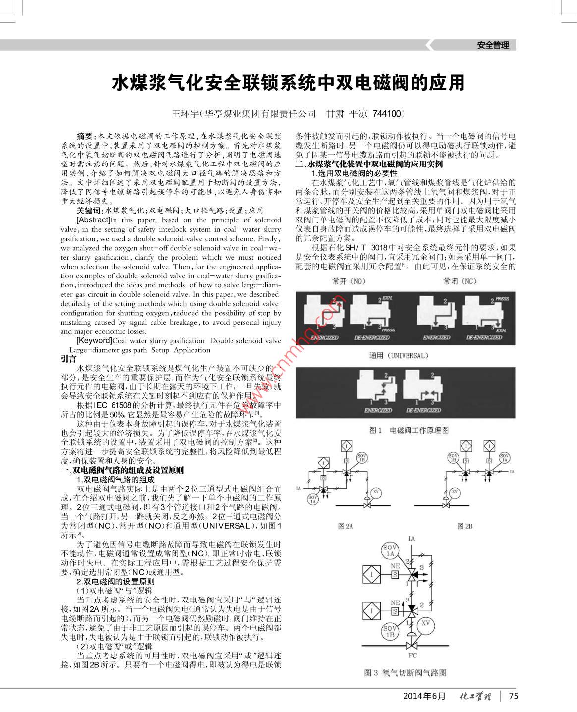 水煤漿氣化安全聯(lián)鎖系統(tǒng)中雙電磁閥的應(yīng)用