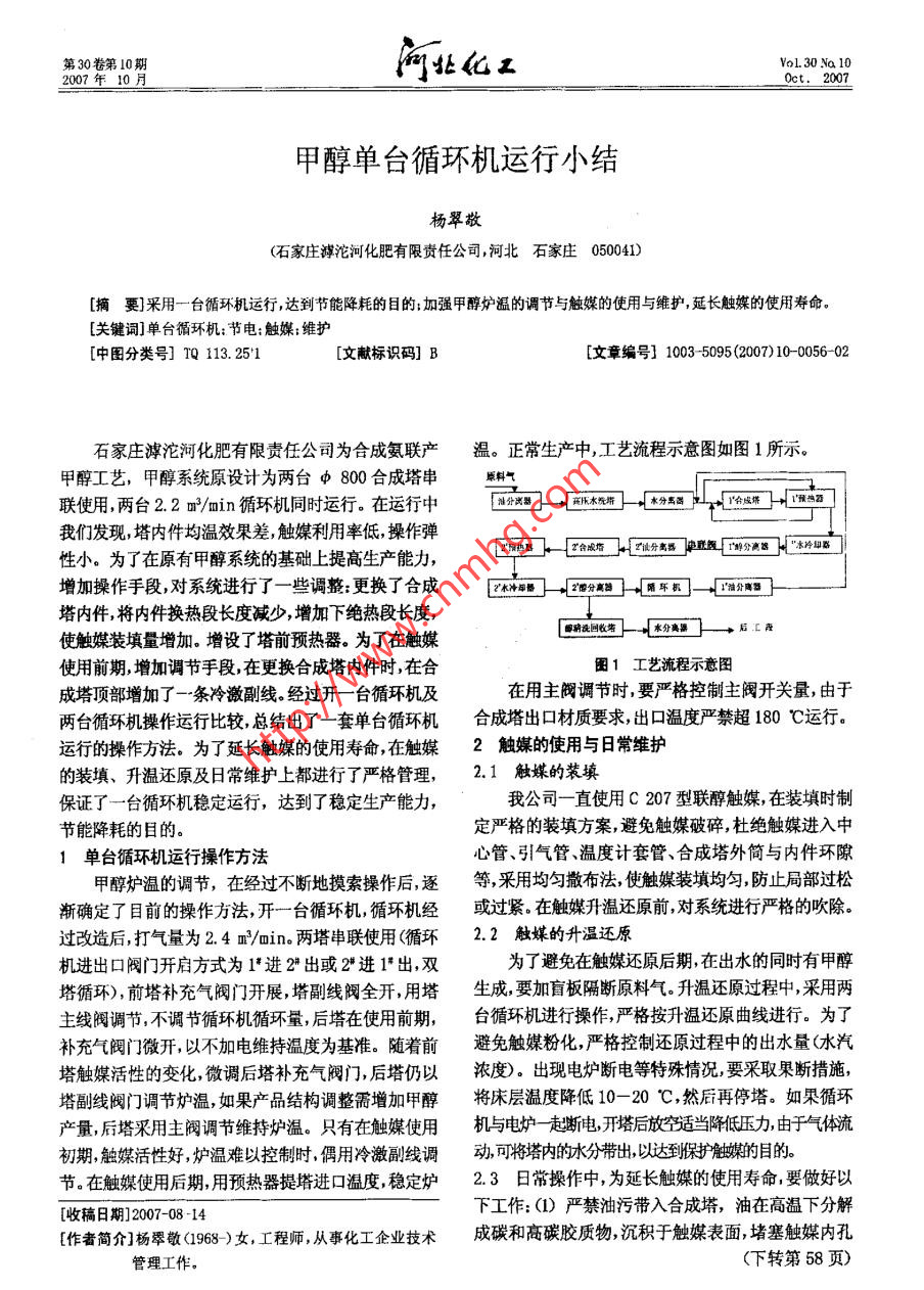甲醇單臺(tái)循環(huán)機(jī)運(yùn)行小結(jié)