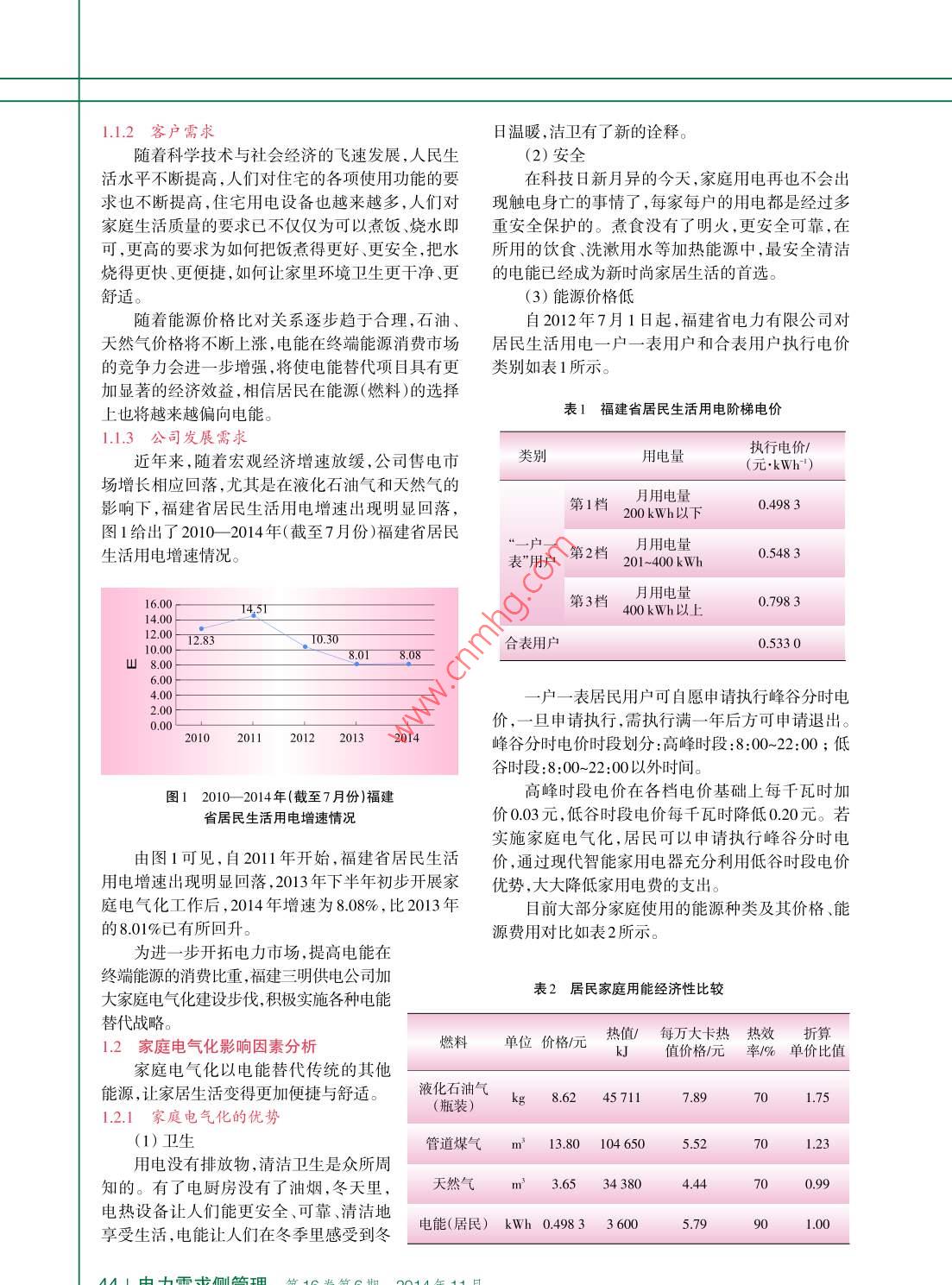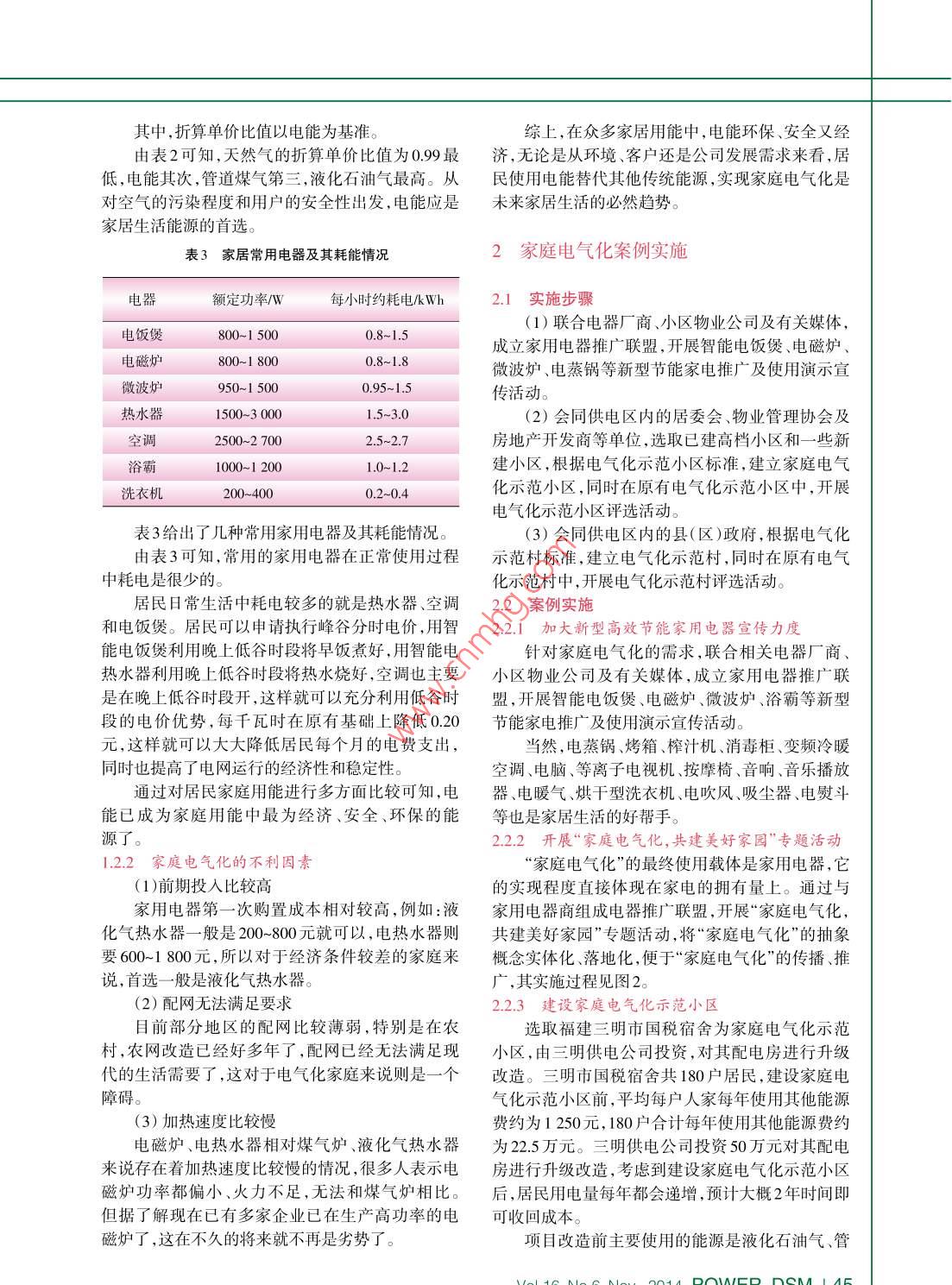 文章編號(hào):1009- 1831(2014)06-0043-05家庭電氣化及示范小區(qū)建設(shè)嚴(yán)斌,傅維元,林凡,樂(lè)光熠(國(guó)網(wǎng)福建省電力有限公司三明供電公司,福建三明365000)Family electrification and demonstration area constructionYAN Bin, FU Wei-yuan, LIN Fan, LE Guang-yi( Sanming Electric Power Supply Company, Sanming 365000, China )摘要:電能屬二次能源,與傳統(tǒng)煤氣等能源相比,具有更Abstract: Eectrical energy belongs to a secondary energy ,安全、便捷、環(huán)保、經(jīng)濟(jì)等優(yōu)點(diǎn)。面對(duì)8益嚴(yán)峻的環(huán)保形勢(shì),it has the advantages of more safety, convenient, environmental加快實(shí)施電能替代,增加電能在終端能源消費(fèi)中的比例,既protection, economy etc, compared with the traditional gas an有經(jīng)濟(jì)性和可行性,又能在很大程度上減少污染,保護(hù)環(huán)other energies. In the face of the increasingly serious environmen-境。國(guó)網(wǎng)三明供電公司聯(lián)合電器廠商、小區(qū)物業(yè)公司及有關(guān)tal situation, carrying out the alternative energy accelerate, in-creasing the proportion in the final energy consumption of the ener-媒體,成立家用電器推廣聯(lián)盟,開(kāi)展家庭電氣化,共建美好gy, are not only economic and feasible, but also can reduce pollu-家園”專題活動(dòng),建設(shè)家庭電氣化示范小區(qū),促進(jìn)家庭電氣tion lrgely to protet the enironmen. State Grid Sanming Power化。家庭電氣化獲得清新潔凈的家居環(huán)境和真正綠色健康Supply Company set up a union to promote the household appliane-es, carried out a special activity named "family electrification, to的生活,勢(shì)必成為未來(lái)家居生活的主導(dǎo)者。build a beautiful homeland”, seleeted the dormitory of Sanming關(guān)鍵詞:電能替代;家庭電氣化;低碳生活Guo Shui as the family electrification demonstration quarter, toput the family electrification project into practice. Family electrifi-cation allows us to have clean home furnishing environment easilyand green and healthy life really, is bound to become the futureleader of home life.Key words: alternative energy ; family electrification; lowcarbon life中圖分類號(hào):F407.61;X382文獻(xiàn)標(biāo)志碼:C隨著人民生活水平的提高,家用能源(燃料)的方式也日趨多樣化。目前國(guó)內(nèi)大部分家庭使用的1家庭電氣化的必然趨勢(shì)能源種類主要有電能、天然氣、液化氣、管道煤氣等,一般的家庭都存在多種能源共同使用的情況。家庭電氣化是以電能替代其他能源,讓電能更無(wú)論是煤氣、液化石油氣還是天然氣,燃燒后廣泛地運(yùn)用于家庭生活中的各個(gè)角落,實(shí)現(xiàn)廚房電均會(huì)向大氣中排放污染物,造成大氣污染,同時(shí)明氣化、家居電氣化和潔衛(wèi)電氣化。廣泛地使用各種火煮食、取暖等容易引起火災(zāi),給生命財(cái)產(chǎn)帶來(lái)威家用電器,無(wú)需大花費(fèi),采用電能替代其他低效率、脅。相比天然氣等一次能源,電能屬于二次能源,高污染能源,提高電能在終端能源消費(fèi)中的比重,居民在家居生活中更多的使用電能,用新型的智能即可享受便捷電器給現(xiàn)代生活帶來(lái)的新改變,讓我家用電器替代原有的普通家用電器,減少煤氣等不們輕松擁有清新潔凈的家居環(huán)境和真正綠色健康可再生能源的使用,將更有利于營(yíng)造綠色低碳的環(huán)1.1家庭電氣化的需求境,這也將讓家居生活變得更加安全、便捷中21。1.1.1 社會(huì)環(huán)境需求近年來(lái),環(huán)境污染問(wèn)題日益嚴(yán)峻,尤其是霧霾收稿日期:2014-08-30作者簡(jiǎn)介:嚴(yán)斌( 1987),男,福建三明人,碩土,研究方向天氣頻發(fā),引起全社會(huì)廣泛關(guān)注,保護(hù)人類賴以生為電力市場(chǎng)分析預(yù)測(cè)及電力營(yíng)銷新型業(yè)務(wù);傅維元(1977),存的生態(tài)環(huán)境得到了社會(huì)各界的高度重視。電能.男,福建上杭人,高級(jí)工程師,研究方向?yàn)殡姎夤こ膛c自動(dòng)作為清潔能源,在改善大氣環(huán)境,有效緩解霧霾天化;林凡(1973),男,福建莆田人,研究方向?yàn)殡娏κ袌?chǎng)開(kāi)拓、氣中起重要作用。同時(shí),電能相對(duì)于煤炭、石油、天能效管理、電力市場(chǎng)分析預(yù)測(cè)及電力營(yíng)銷新型業(yè)務(wù);樂(lè)光熠然氣等能源具有更加便捷、安全的優(yōu)勢(shì),而且可以(1988),男,福建三明人,助理工程師,研究方向?yàn)槟苄Ч芾磔^為方便地轉(zhuǎn)換為機(jī)械能、熱能等其他形式的能源及電力營(yíng)銷新型業(yè)務(wù)。并實(shí)現(xiàn)精密控制8- -10。1.1.2客戶需求日溫暖,潔衛(wèi)有了新的詮釋。隨著科學(xué)技術(shù)與社會(huì)經(jīng)濟(jì)的飛速發(fā)展,人民生(2)安全活水平不斷提高,人們對(duì)住宅的各項(xiàng)使用功能的要在科技日新月異的今天,家庭用電再也不會(huì)出求也不斷提高,住宅用電設(shè)備也越來(lái)越多,人們對(duì)現(xiàn)觸電身亡的事情了,每家每戶的用電都是經(jīng)過(guò)多家庭生活質(zhì)量的要求已不僅僅為可以煮飯、燒水即重安全保護(hù)的。煮食沒(méi)有了明火,更安全可靠,在可,更高的要求為如何把飯煮得更好、更安全,把水所用的飲食、洗漱用水等加熱能源中,最安全清潔燒得更快更便捷,如何讓家里環(huán)境衛(wèi)生更干凈、更的電能已經(jīng)成為新時(shí)尚家居生活的首選。舒適。(3)能源價(jià)格低隨著能源價(jià)格