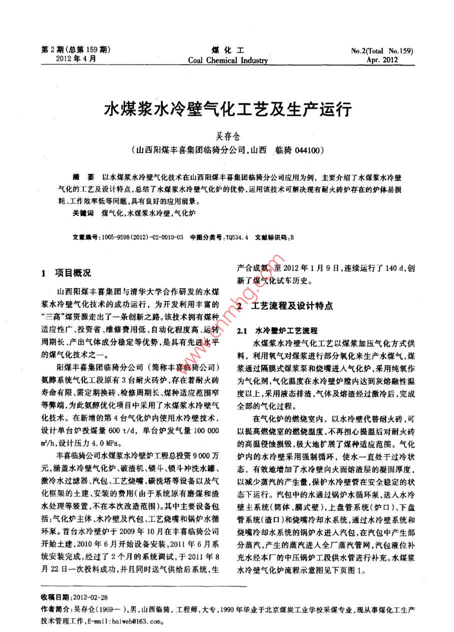 四噴嘴水煤漿氣化爐工業(yè)應(yīng)用情況簡介 2020-03-23