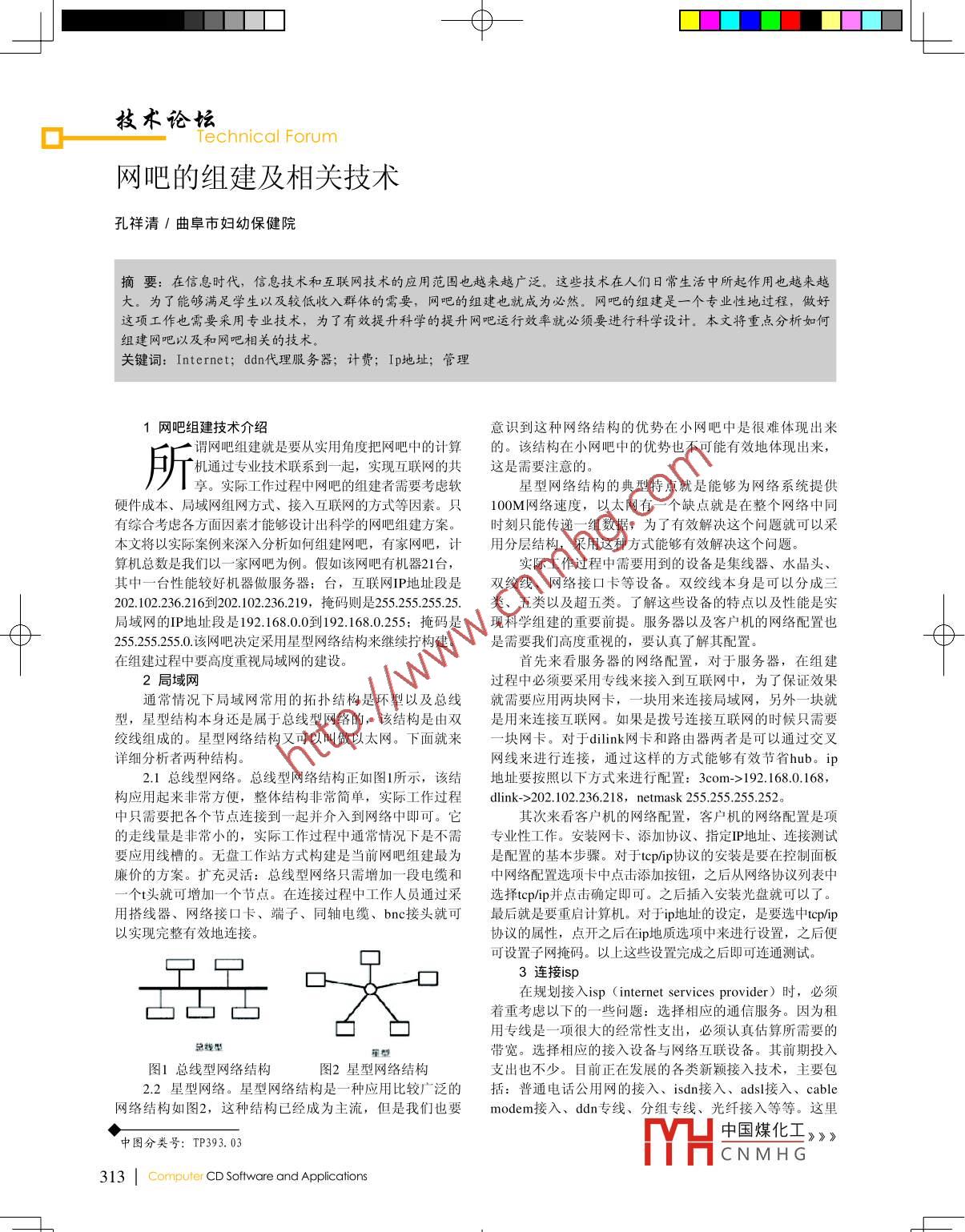 -中-技術(shù)論壇0-echnical Forum .網(wǎng)吧的組建及相關(guān)技術(shù)孔祥清1曲阜市婦幼保健院摘要:在信息時(shí)代,信息技術(shù)和互聯(lián)網(wǎng)技術(shù)的應(yīng)用范圍也越來越廣泛。這些技術(shù)在人們?nèi)粘I钪兴鹱饔靡苍絹碓酱?。為了能夠滿足學(xué)生以及較低收入群體的需要,網(wǎng)吧的組建也就成為必然。網(wǎng)吧的組建是一個(gè)專業(yè)性地過程,做好這項(xiàng)工作也需要采用專業(yè)技術(shù),為了有效提升科學(xué)的提升網(wǎng)吧運(yùn)行效率就必須要進(jìn)行科學(xué)設(shè)計(jì)。本文將重點(diǎn)分析如何組建網(wǎng)吧以及和網(wǎng)吧相關(guān)的技術(shù),關(guān)鍵詞: Internet; ddn代理服 務(wù)器;計(jì)費(fèi); Ip地址; 管理網(wǎng)吧組建技術(shù)介紹意識(shí)到這種網(wǎng)絡(luò)結(jié)構(gòu)的優(yōu)勢在小網(wǎng)吧中是很難體現(xiàn)出來謂網(wǎng)吧組建就是要從實(shí)用角度把網(wǎng)吧中的計(jì)算的。該結(jié)構(gòu)在小網(wǎng)吧中的優(yōu)勢也不可能有效地體現(xiàn)出來,機(jī)通過專業(yè)技術(shù)聯(lián)系到一起,實(shí)現(xiàn)互聯(lián)網(wǎng)的共這是需要注意的。所享。實(shí)際工作過程中網(wǎng)吧的組建者需要考慮軟星型網(wǎng)絡(luò)結(jié)構(gòu)的典型特點(diǎn)就是能夠?yàn)榫W(wǎng)絡(luò)系統(tǒng)提供硬件成本、局域網(wǎng)組網(wǎng)方式、接入互聯(lián)網(wǎng)的方式等因素。只100M網(wǎng)絡(luò)速度,以太網(wǎng)有一個(gè)缺點(diǎn)就是在整個(gè)網(wǎng)絡(luò)中同有綜合考慮各方面因素才能夠設(shè)計(jì)出科學(xué)的網(wǎng)吧組建方案。時(shí)刻只能傳遞一組數(shù)據(jù),為了有效解決這個(gè)問題就可以采本文將以實(shí)際案例來深入分析如何組建網(wǎng)吧,有家網(wǎng)吧,計(jì)用分層結(jié)構(gòu),采用這種方式能夠有效解決這個(gè)問題。算機(jī)總數(shù)是我們以一家網(wǎng)吧為例。假如該網(wǎng)吧有機(jī)器21臺(tái),實(shí)際工作過程中需要用到的設(shè)備是集線器、水晶頭、其中- -臺(tái)性能較好機(jī)器做服務(wù)器;臺(tái),互聯(lián)網(wǎng)IP地址段是雙絞線、網(wǎng)絡(luò)接口卡等設(shè)備。雙絞線本身是可以分成三202.102.236.216到202.102.236.219,掩碼則是55.255.255.25. 類、 五類以及超五類。了解這些設(shè)備的特點(diǎn)以及性能是實(shí)局域網(wǎng)的IP地址段是192.168.0.0到192.168.0.255;掩碼是現(xiàn)科學(xué)組建的重要前提。服務(wù)器以及客戶機(jī)的網(wǎng)絡(luò)配置也255.255.255.0. 該網(wǎng)吧決定采用星型網(wǎng)絡(luò)結(jié)構(gòu)來繼續(xù)擰構(gòu)建。是需要我們高度重視的,要認(rèn)真了解其配置。在組建過程中要高度重視局域網(wǎng)的建設(shè)。首先來看服 務(wù)器的網(wǎng)絡(luò)配置,對(duì)于服務(wù)器,在組建2局域網(wǎng)過程中必須要采用專線來接入到互聯(lián)網(wǎng)中,為了保證效果通常情況下局域網(wǎng)常用的拓?fù)浣Y(jié)構(gòu)是環(huán)型以及總線就需要應(yīng)用兩塊網(wǎng)卡,-塊用來連接局域網(wǎng),另外一塊就型,星型結(jié)構(gòu)本身還是屬于總線型網(wǎng)絡(luò)的,該結(jié)構(gòu)是由雙是用來連接互聯(lián)網(wǎng)。如果是撥號(hào)連接互聯(lián)網(wǎng)的時(shí)候只需要絞線組成的。星型網(wǎng)絡(luò)結(jié)構(gòu)又可以叫做以太網(wǎng)。下面就來一塊網(wǎng)卡。 對(duì)于dilink網(wǎng)卡和路由器兩者是可以通過交叉詳細(xì)分析者兩種結(jié)構(gòu)。網(wǎng)線來進(jìn)行連接,通過這樣的方式能夠有效節(jié)省hub。ip2.1總線型網(wǎng)絡(luò)??偩€型網(wǎng)絡(luò)結(jié)構(gòu)正如圖l所示,該結(jié)地址要按照以下方式來進(jìn)行配置: 3com-> 192.168.0.168,構(gòu)應(yīng)用起來非常方便,整體結(jié)構(gòu)非常簡單,實(shí)際工作過程dlink->202. 102.236.218,netmask 255.255.255.252.中只需要把各個(gè)節(jié)點(diǎn)連接到- -起并介入到網(wǎng)絡(luò)中即可。它其次來看客戶機(jī)的網(wǎng)絡(luò)配置,客戶機(jī)的網(wǎng)絡(luò)配置是項(xiàng)的走線量是非常小的,實(shí)際工作過程中通常情況下是不需專業(yè)性工作。安裝網(wǎng)卡、添加協(xié)議、指定IP地址、連接測試要應(yīng)用線槽的。無盤工作站方式構(gòu)建是當(dāng)前網(wǎng)吧組建最為是配置的基本步驟。對(duì)于tcp/ip協(xié)議的安裝是要在控制面板廉價(jià)的方案。擴(kuò)充靈活:總線型網(wǎng)絡(luò)只需增加一段電纜和中網(wǎng)絡(luò)配置選項(xiàng)卡中點(diǎn)擊添加按鈕,之后從網(wǎng)絡(luò)協(xié)議列表中-一個(gè)t頭就可增加一一個(gè) 節(jié)點(diǎn)。在連接過程中工作人員通過采選擇tcp/ip并點(diǎn)擊確定即可。之后插入安裝光盤就可以了。用搭線器、網(wǎng)絡(luò)接口卡、端子、同軸電纜、bnc接頭就可最后就是要重啟計(jì)算機(jī)。對(duì)于ip地址的設(shè)定,是要選中tcp/ip以實(shí)現(xiàn)完整有效地連接。協(xié)議的屬性,點(diǎn)開之后在ip地質(zhì)選項(xiàng)中來進(jìn)行設(shè)置,之后便可設(shè)置子網(wǎng)掩碼。以上:這些設(shè)置完成之后即可連通測試。中中口.3連接isp在規(guī)劃接入isp (internet services provider)時(shí),必須凸山凸著重考慮以下的一些問題:選擇相應(yīng)的通信服務(wù)。因?y