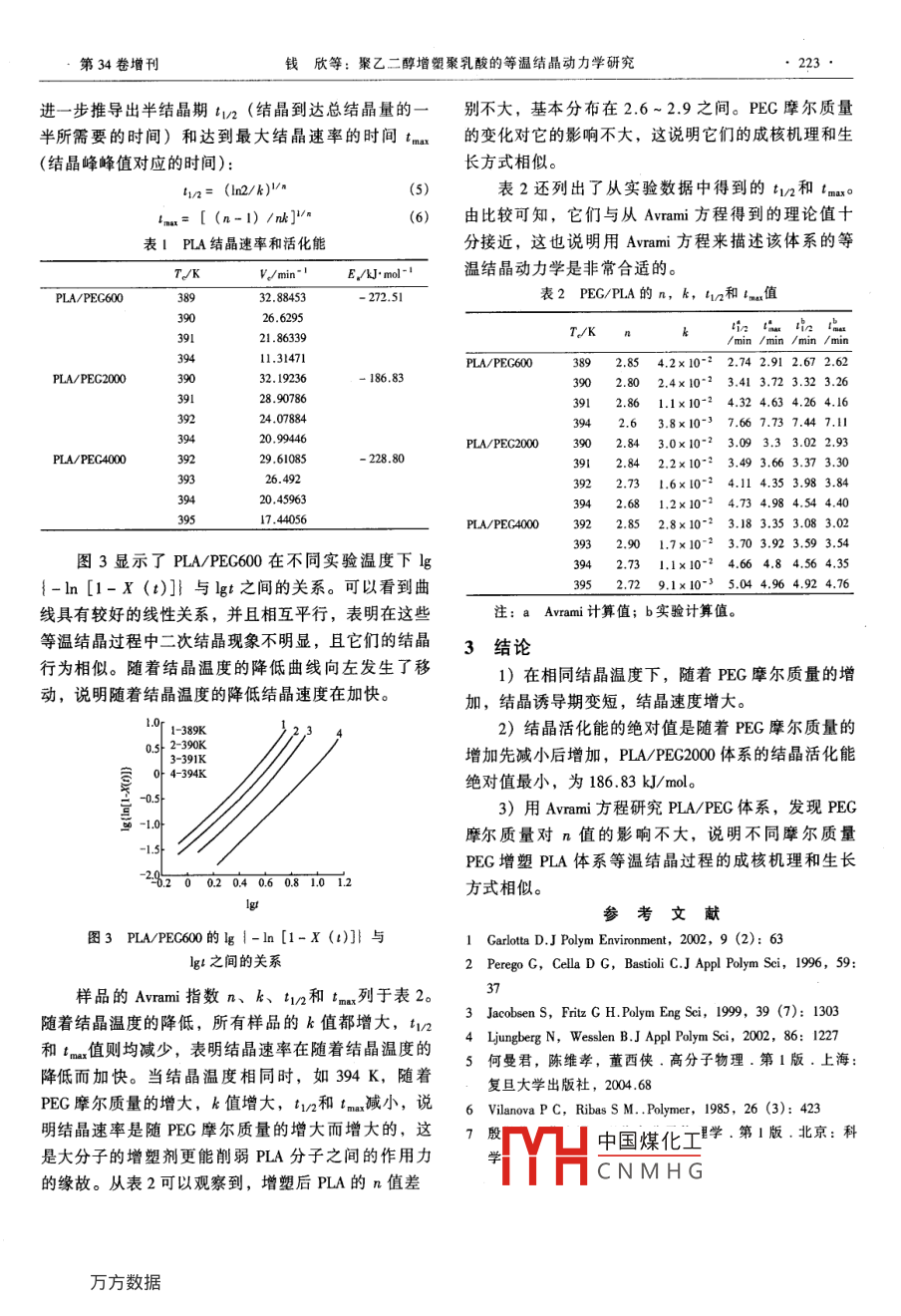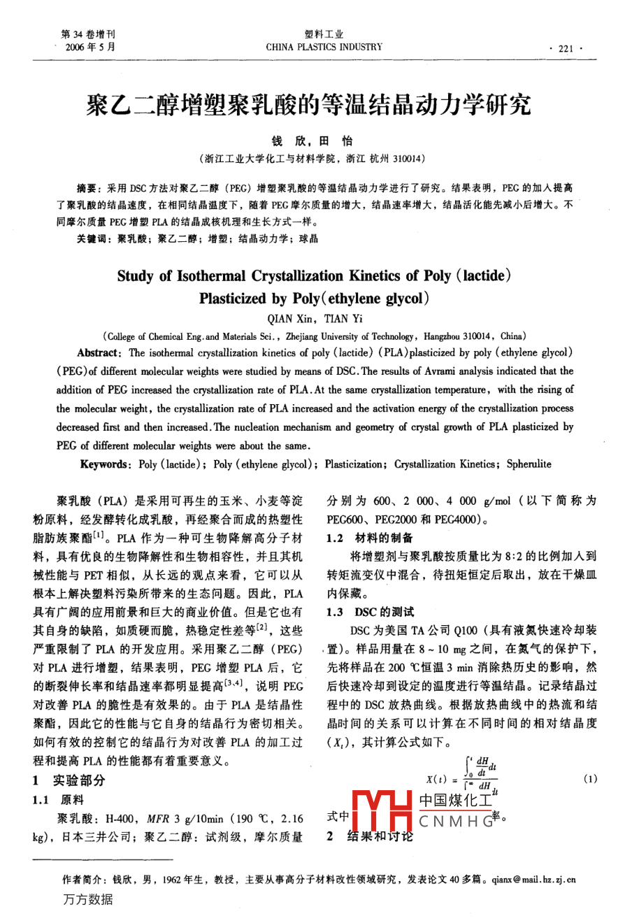 聚乙二醇增塑聚乳酸的等溫結(jié)晶動(dòng)力學(xué)研究