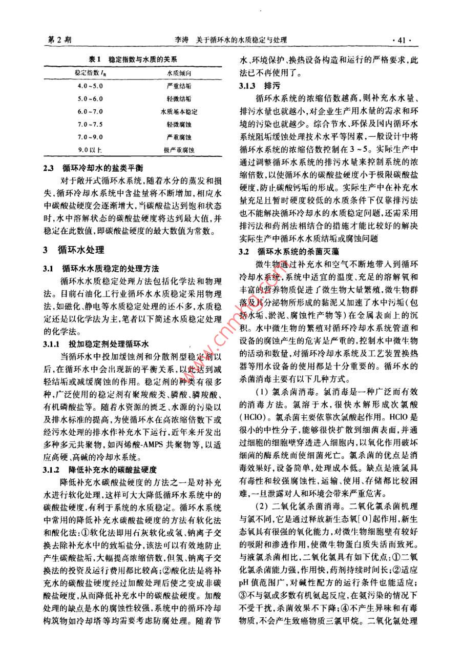 關(guān)于循環(huán)水的水質(zhì)穩(wěn)定與處理