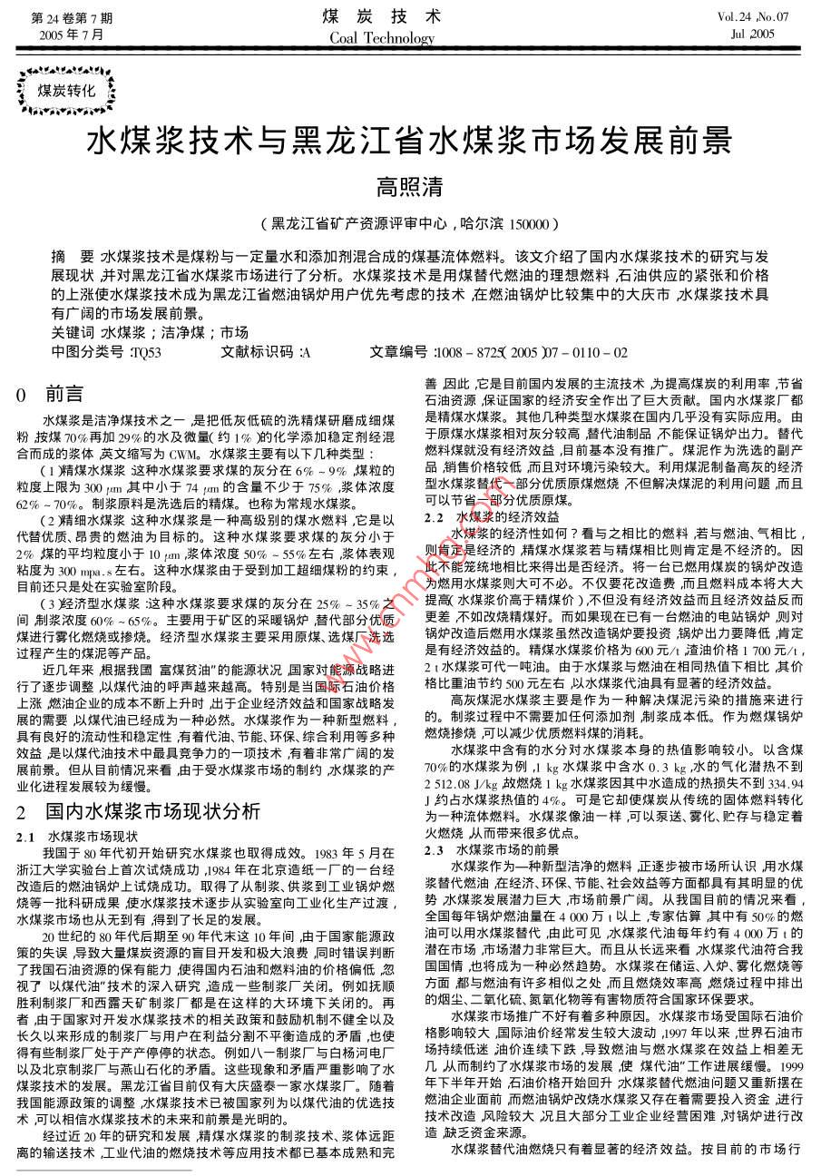 水煤漿技術(shù)與黑龍江省水煤漿市場(chǎng)發(fā)展前景