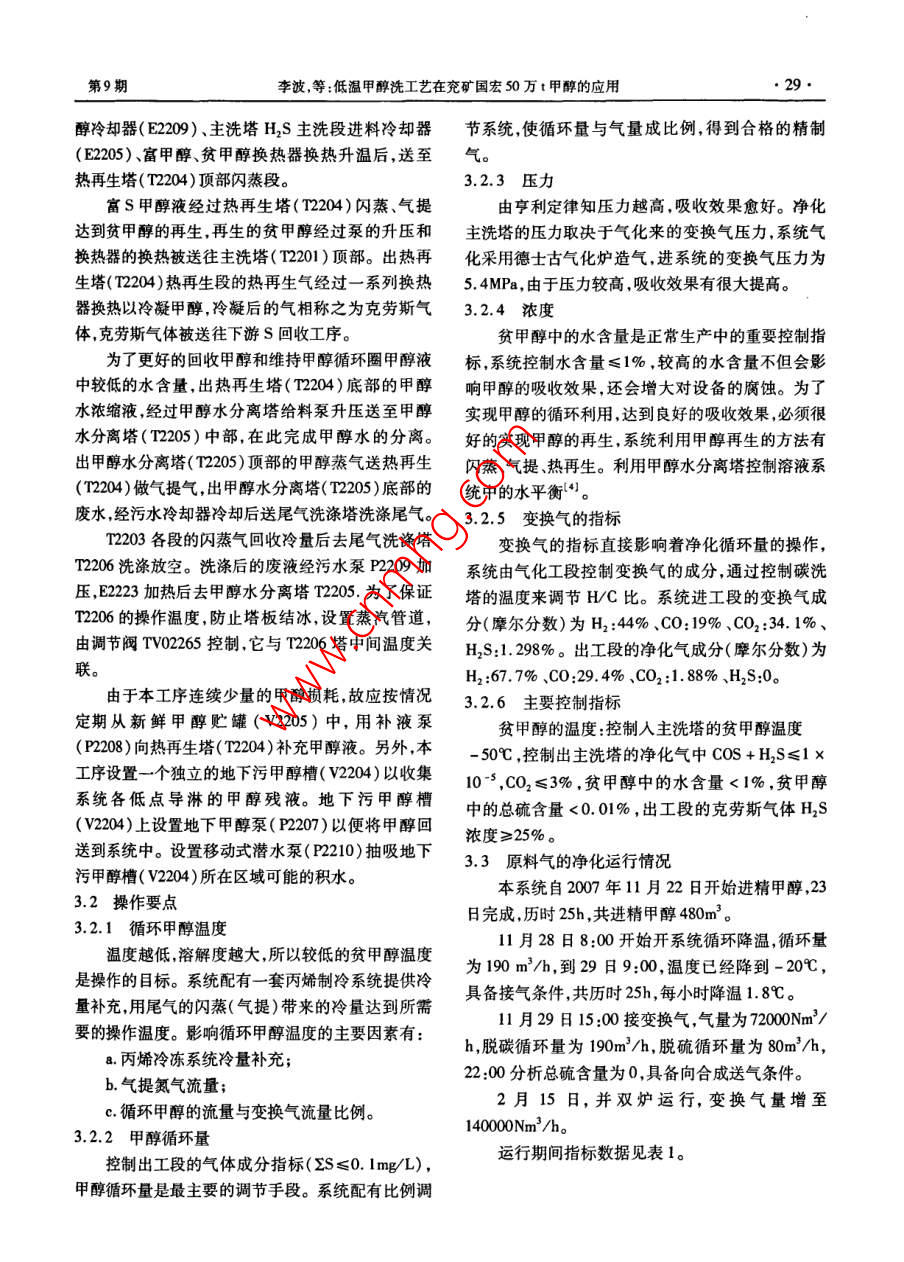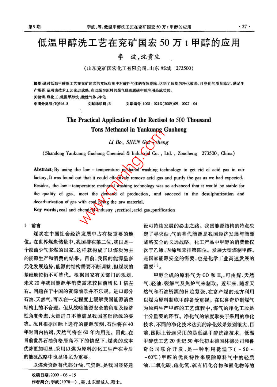 低溫甲醇洗工藝在兗礦國宏50萬t甲醇的應用 低溫甲醇洗工藝在兗礦國宏50萬t甲醇的應用