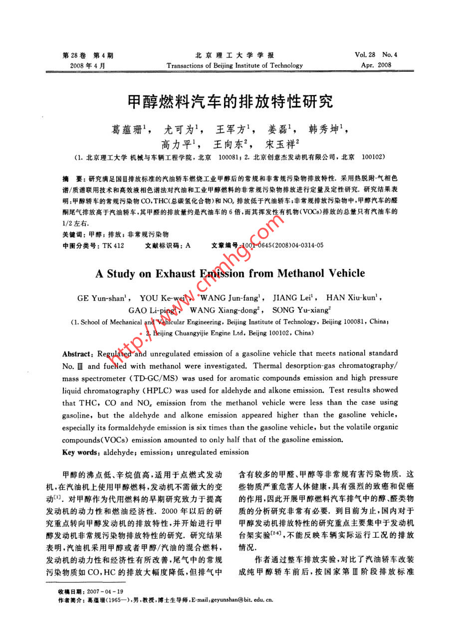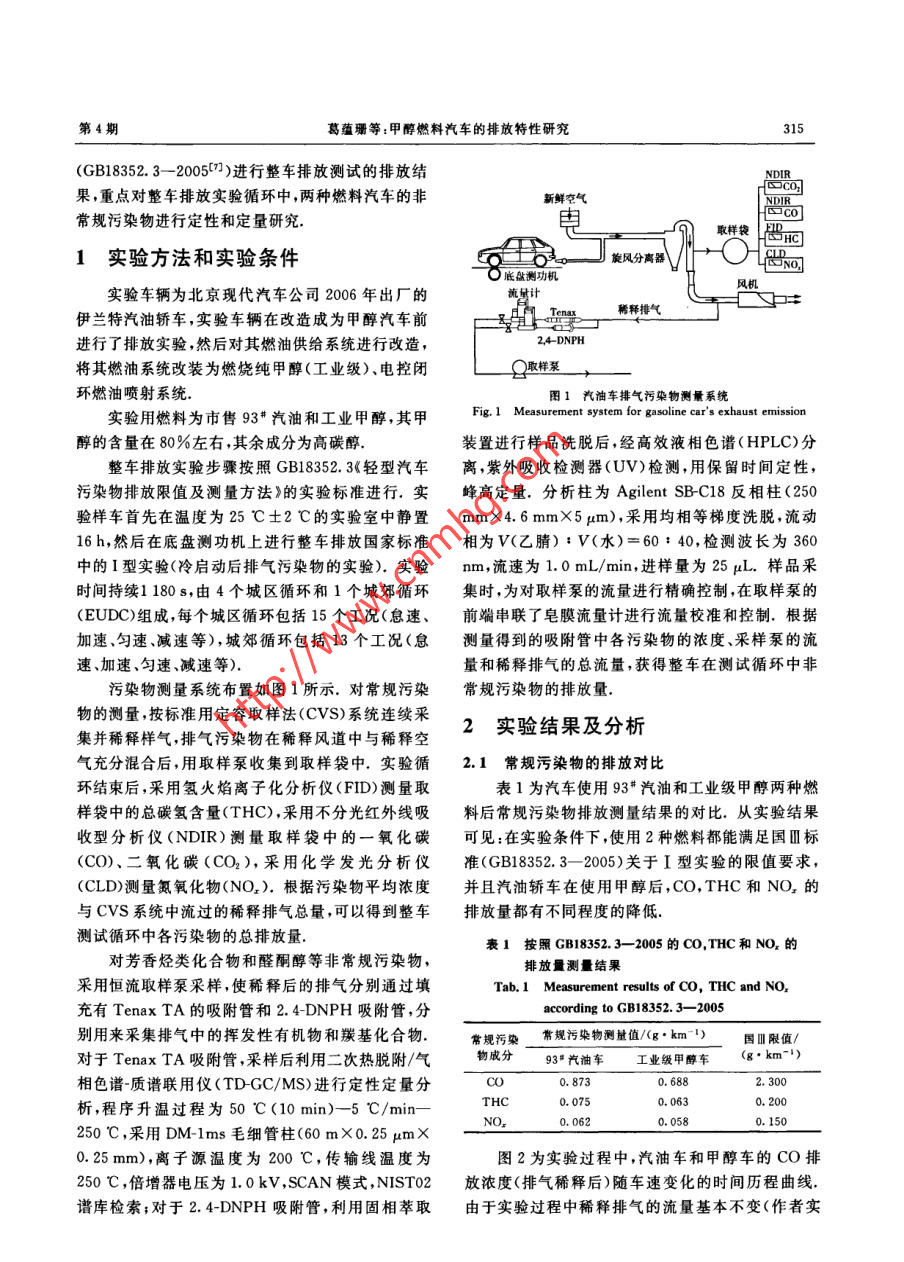甲醇燃料汽車的排放特性研究