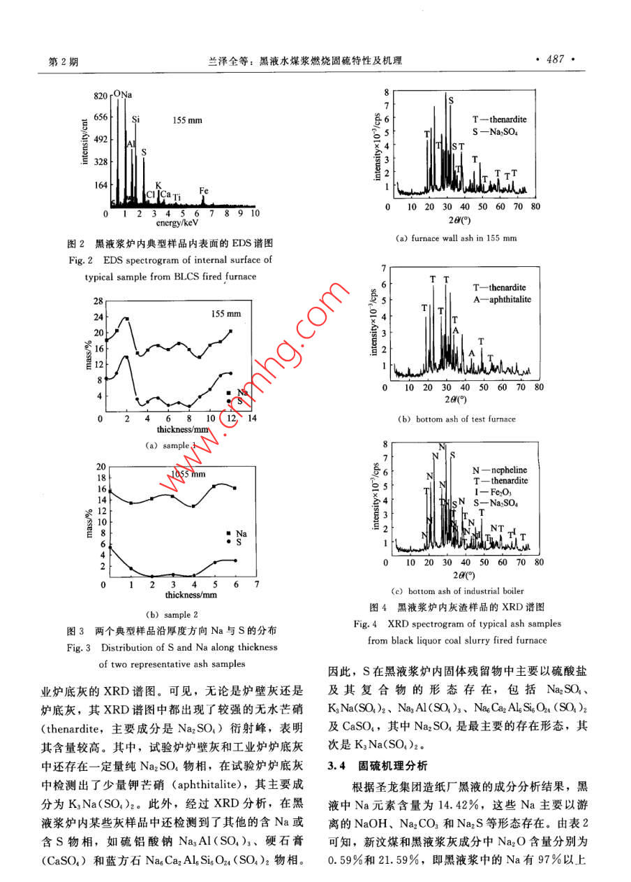黑液水煤漿燃燒固硫特性及機(jī)理